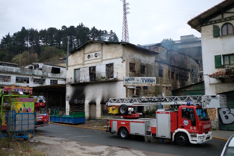 Se investigan las causas del incendio desatado esta madrugada en una fábrica abandonada de la zona donostiarra de El Infierno,