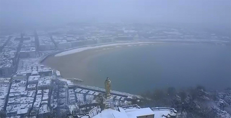 Un dron sobrevuela el Monte Urgull en una mañana muy nevada en Donostia. (Vídeo enviado por Hello Donosti) https://youtu.be/8B9KbArxJMI