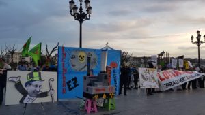 En el lado contrario ayer se movilizaron quienes consideran una «paradoja» que tras esta iniciativa «grandilocuente» haya determinadas políticas «que no casan con tan buenas intenciones». En referencia directa a la incineradora que se está construyendo en Zubieta. De hecho los grupos anti incineradora se reunieron frente al Ayuntamiento para ver entrar a los expertos a la recepción de bienvenida.