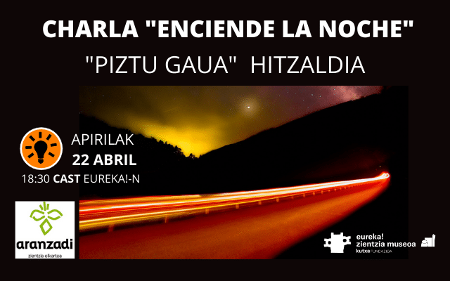 Eureka! Zientzia Museoa ofrece la charla abierta ‘Enciende la noche’ que tratará sobre el problema de la contaminación lumínica. Será en la Sala Newton del museo Eureka! el próximo 22 de abril a las 18:30 y estará impartida por miembros del Departamento de Astronomía de la Sociedad Aranzadi.