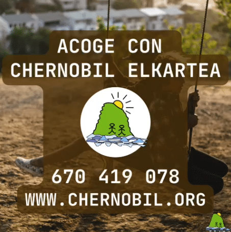 Chernobil Elkartea ha lanzado una petición para que familias vascas acojan este verano a niños de la citada zona en Ucrania con el objeto de que puedan vivir y disfrutar unos meses en un entorno ‘limpio’ y en paz. «Solo necesitan seguridad, descanso, juegos y un entorno saludable», dice la asociación. El límite para apuntarse a la campaña es el 30 de abril (contacto: 670419078 www.chernobil.org)