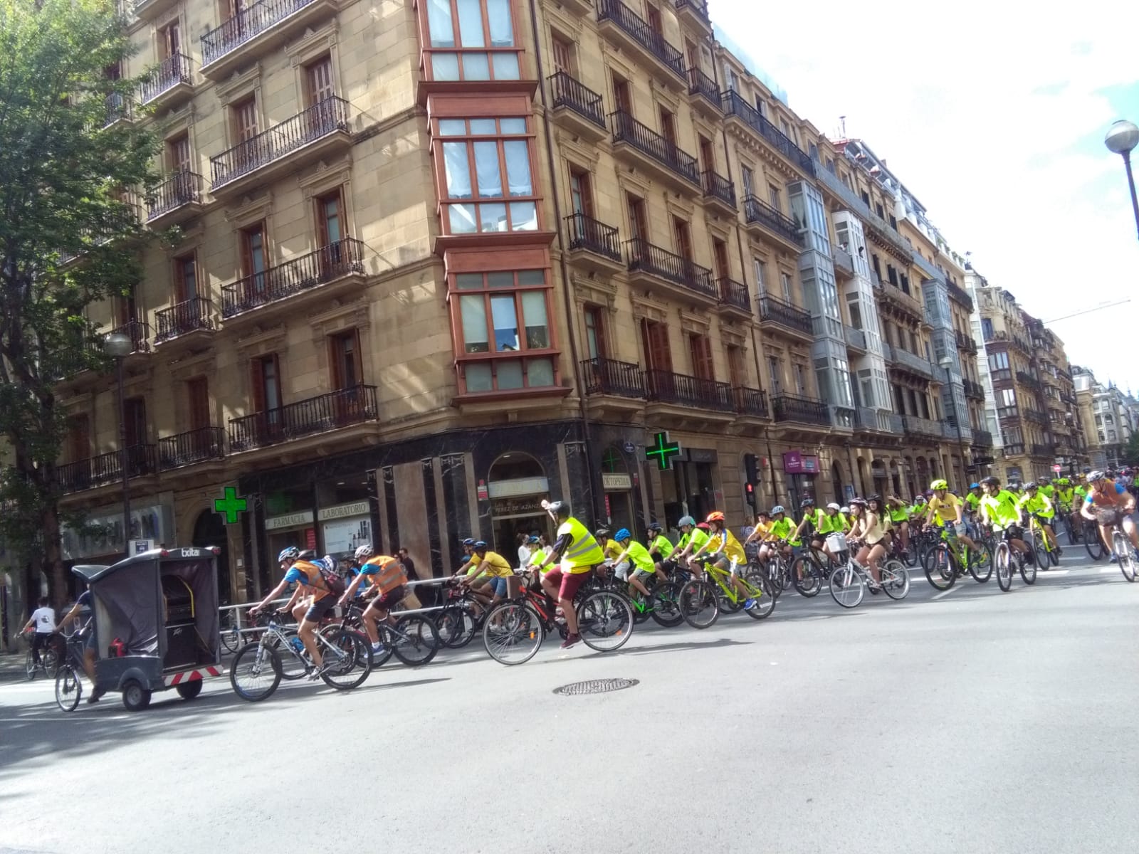 El Ayuntamiento de Donostia representado por la concejala de Movilidad y Transportes Pilar Arana, el concejal de Cultura Jon Insausti, el concejal de Deportes Martín Ibabe, la concejala de Espacios Públicos y Proyectos Urbanos Marisol Garmendia, la concejala de Igualdad Duñike Agirrezabalaga, el concejal Mikel Lezama y Jone Argoitia, directora de Movilidad, ha dado la salida a la VI edición de la Bizikletada.