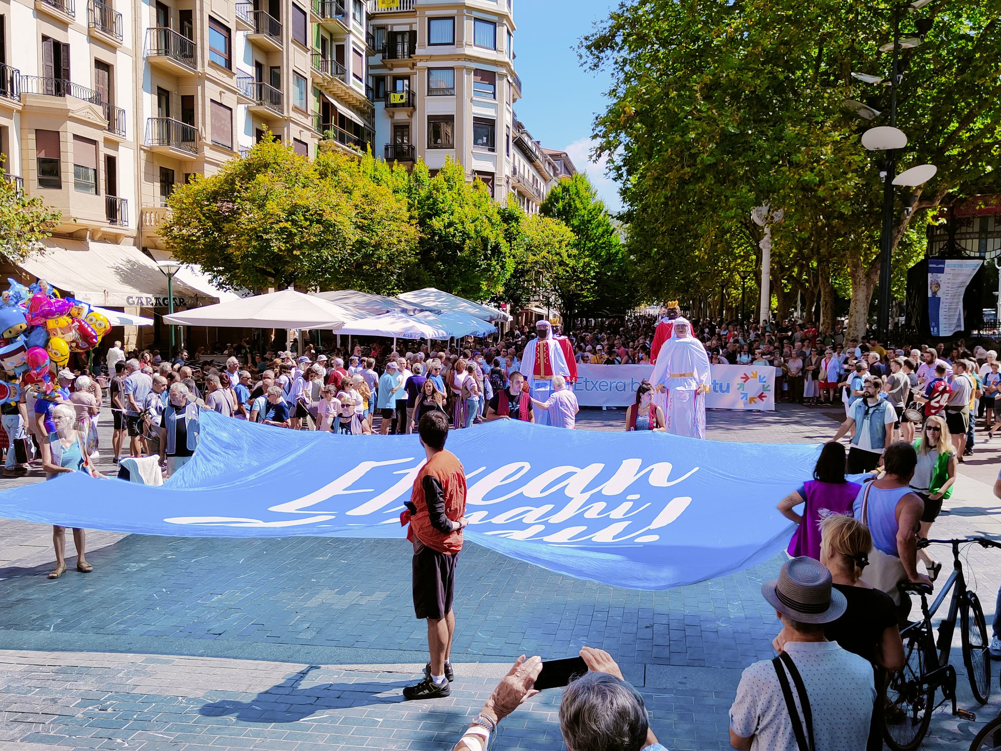 Tras una pancarta con el lema en euskera «Etxera bidea gertu» (El camino a casa cerca), los manifestantes, animados por un grupo de dulzaineros y tamborileros y una comparsa de gigantes, han recorrido las calles céntricas de la ciudad, desde el Boulevard hasta el puerto, donde ha concluido la manifestación.