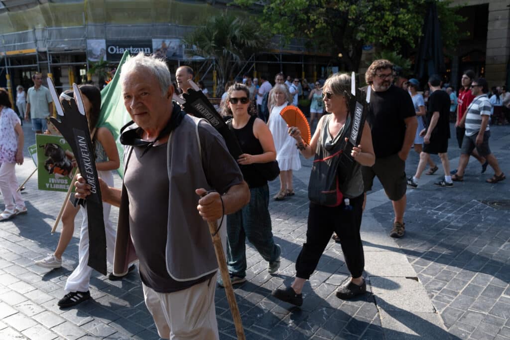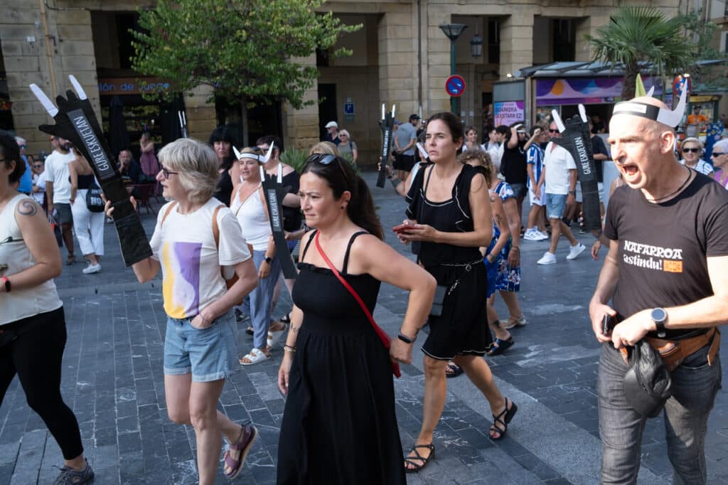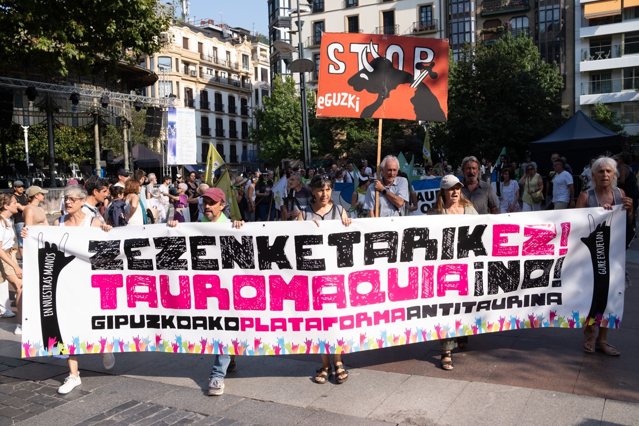 La protesta estaba convocada por la Plataforma Antitaurina de Gipuzkoa con el lema «Toros no. Tauromaquia no». «Goia, escucha, Donostia antitaurina», «No es cultura es tortura», «Se acabó la costumbre de matar en Illunbe» fueron otros lemas coreados durante la marcha.