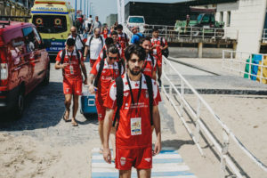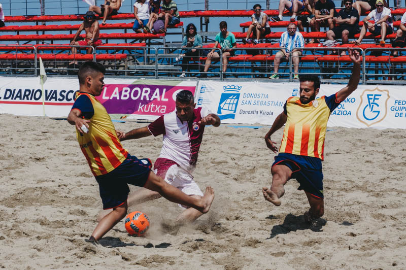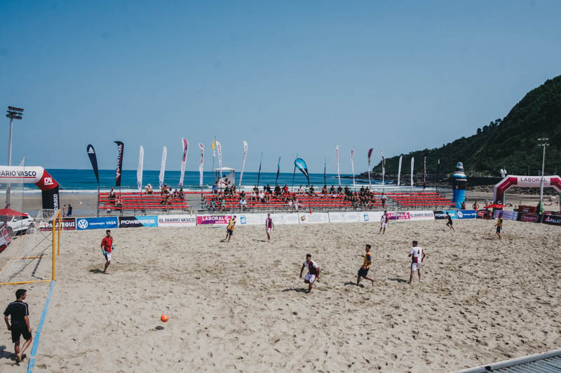 Andalucía, La Rioja, Cantabria, Baleares, Melilla, Cataluña, Extremadura, Valencia, Madrid, Murcia, Castilla la Mancha y Euskadi se miden desde ayer en el campeonato de fútbol playero que se celebra en la Zurriola y que seguro reúne a muchos curiosos este fin de semana.