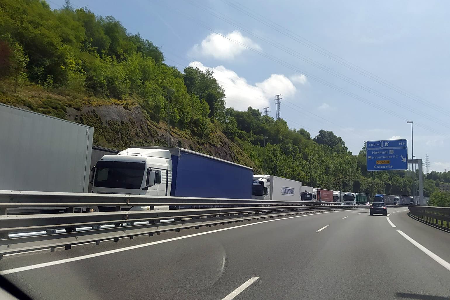 Las colas afectan fundamentalmente a la AP-8 en sentido a Francia, desde el peaje de Biriatou hasta pasado Oiartzun, mientras que otras carreteras adyacentes, como la GI-363 en Errenteria o la N-121-A desde Irun hasta Navarra, también siguen afectadas, ha informado el departamento vasco de Seguridad.