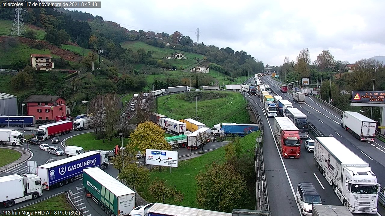 Según ha informado el departamento vasco de Seguridad, las retenciones de circulación han comenzado sobre las 8.30 horas de esta mañana y en un principio llegaban hasta la rotonda de Zaisa de la N-121, pero han ido incrementándose progresivamente hasta el peaje de Irun, situado a 7 kilómetros de la frontera.