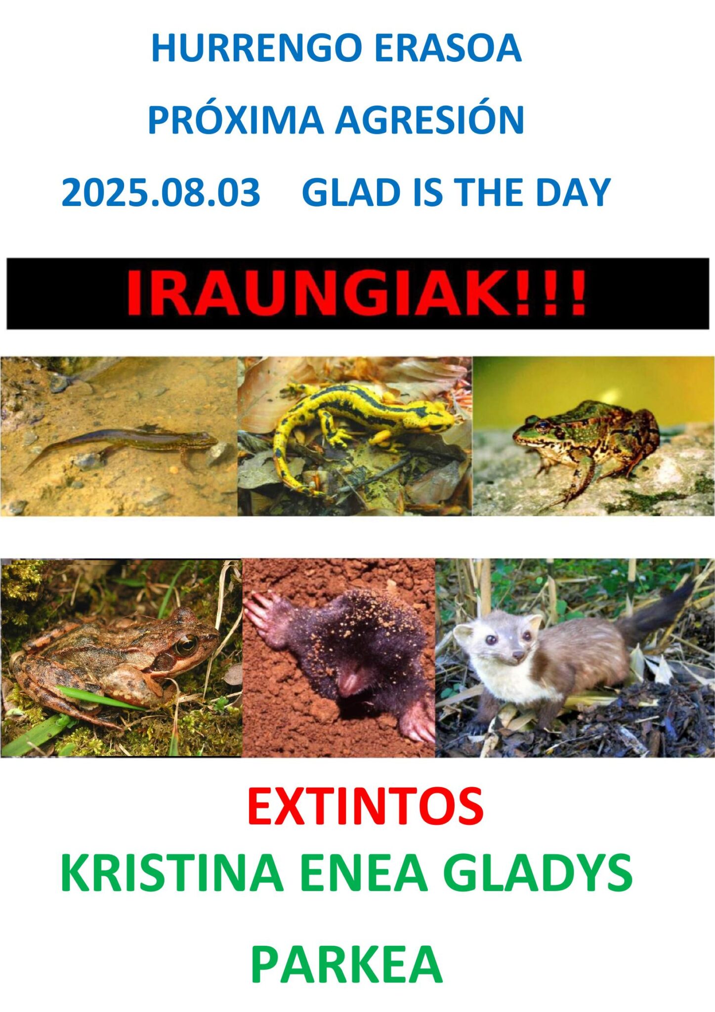 El grupo ecologista Parkea Bizirik kukulunbera y una veintena de colectivos han solicitado la suspensión del festival Glad is the Day, previsto para el 3 de agosto en el parque donostiarra de Cristina Enea. Con el lema «Parque Kristina Enea – Gladys, sí. Glad is the Day, derogación», denuncian graves daños medioambientales que el evento provocaría en este espacio natural.
