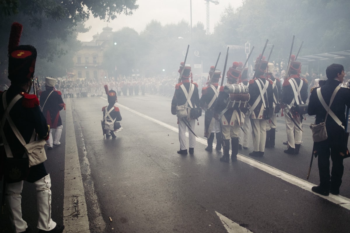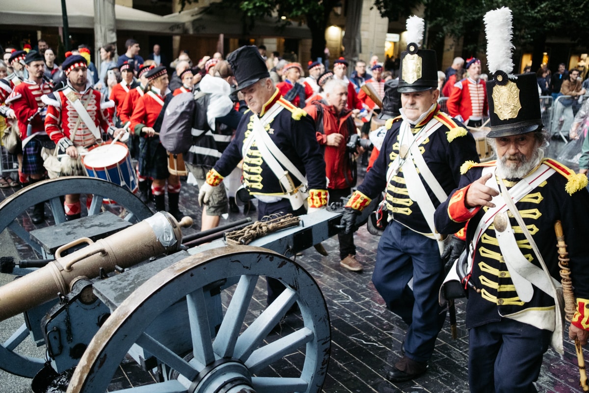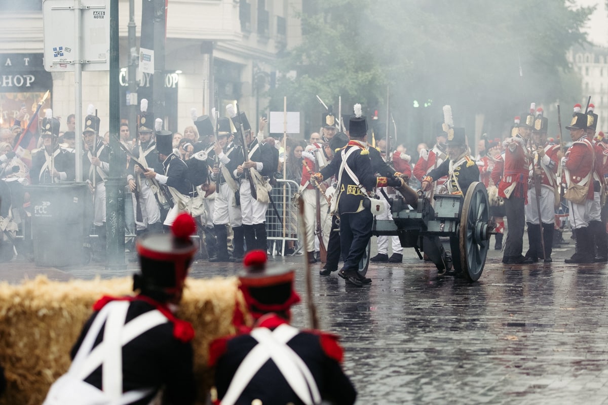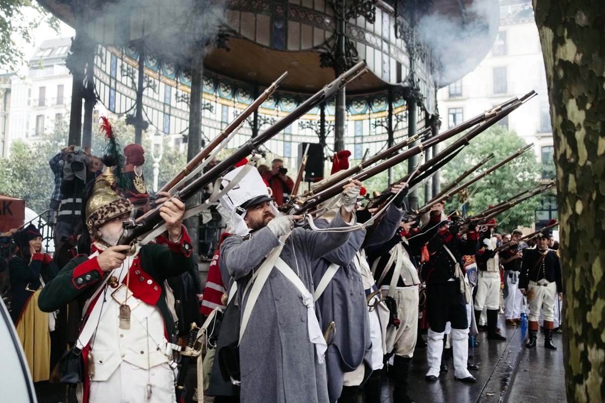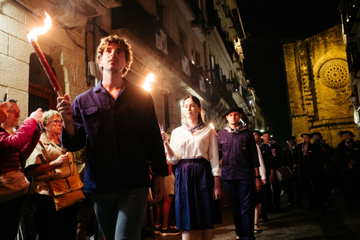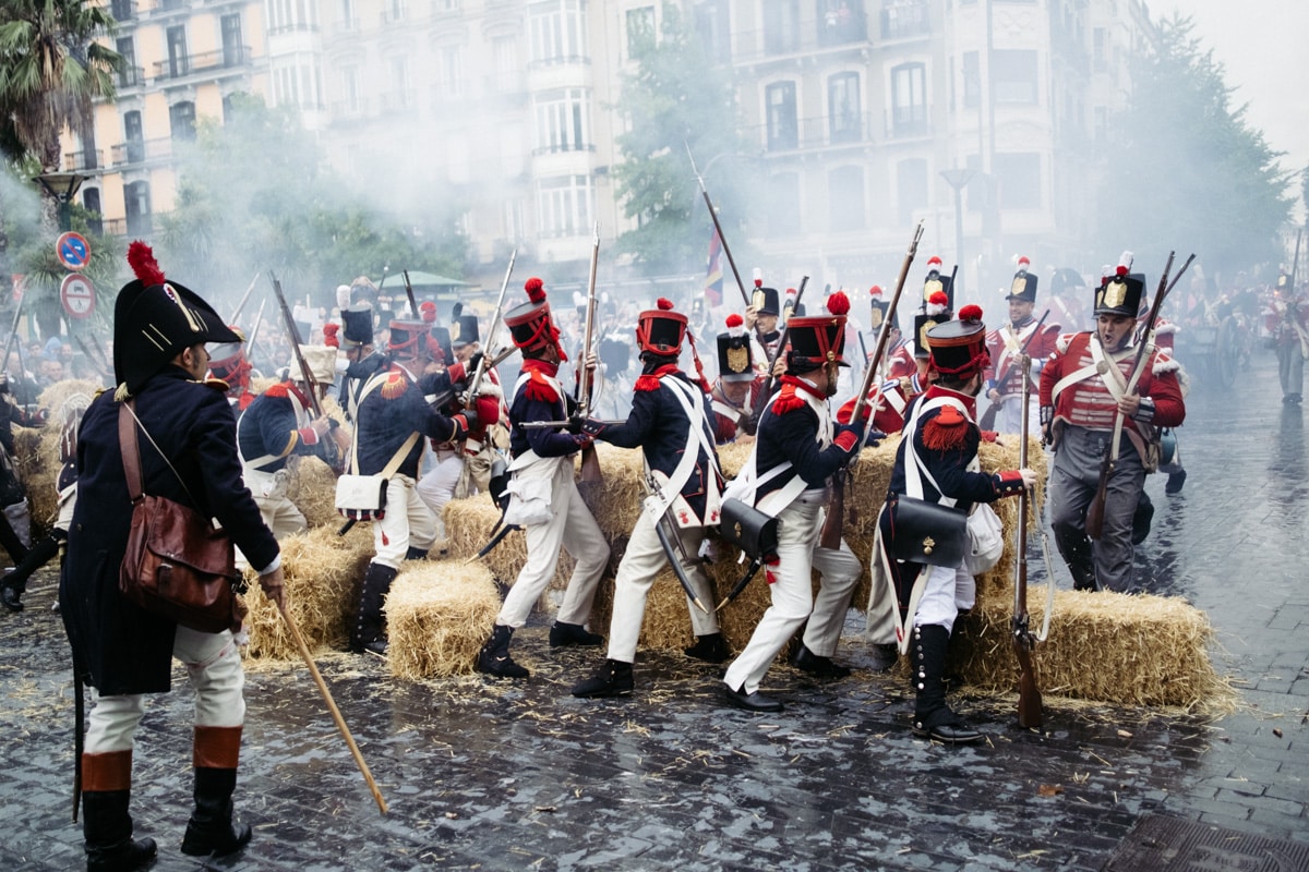 No perdonó la lluvia el pasado año la conmemoración del 31 de Agosto en Donostia y tampoco ha querido faltar hoy. Este domingo no ha podido presentarse más desapacible pese a la buena voluntad de todos los participantes en la recreación del aniversario de la quema de la ciudad en 1813.