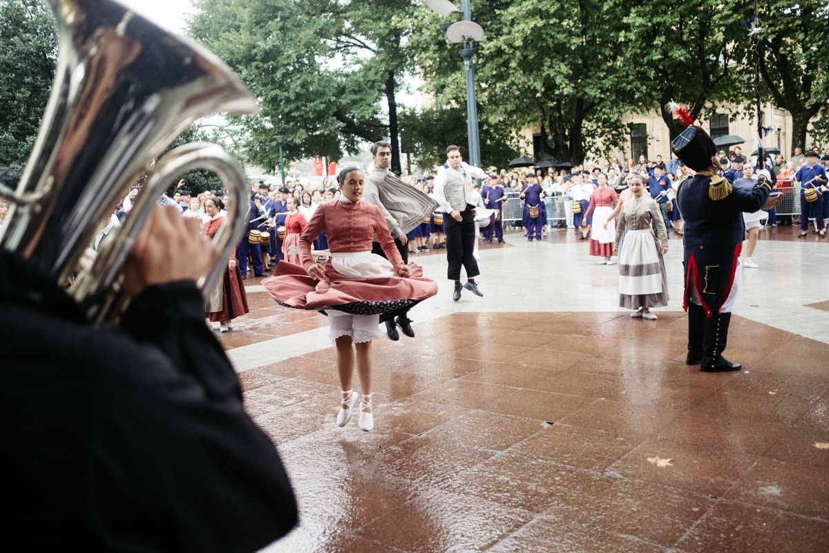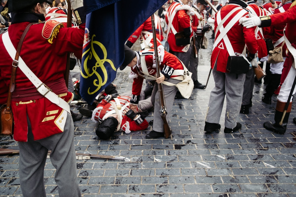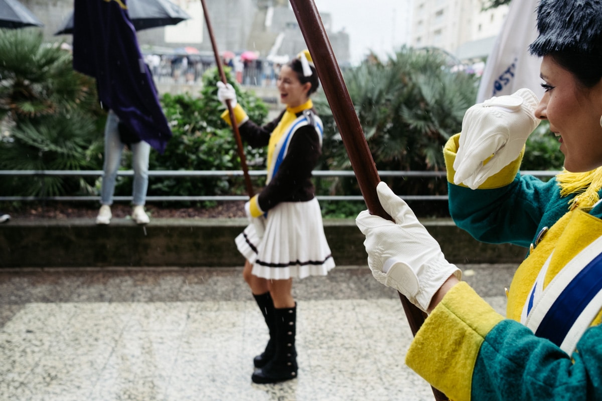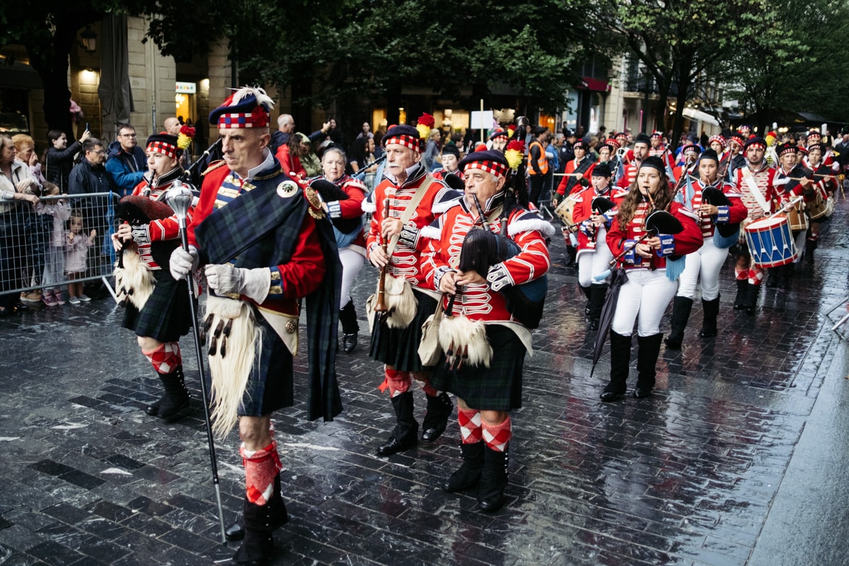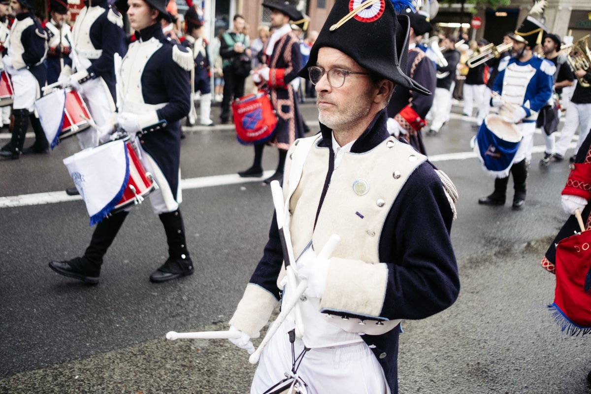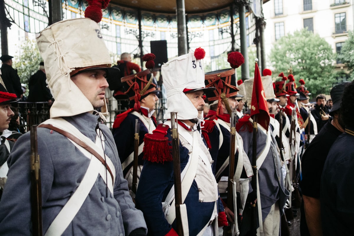 No perdonó la lluvia el pasado año la conmemoración del 31 de Agosto en Donostia y tampoco ha querido faltar hoy. Este domingo no ha podido presentarse más desapacible pese a la buena voluntad de todos los participantes en la recreación del aniversario de la quema de la ciudad en 1813.
