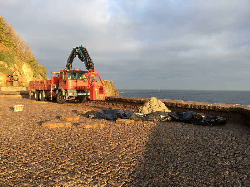 Hoy ha comenzado en el muro de costa, en el Peine del Viento, una obra de reparación de boquetes en la