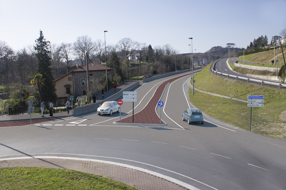 “Las salidas de la rotonda en sus tres accesos se realizarán a través de un único carril de circulación, mientras que las entradas a la rotonda serán en dos carriles, salvo la conexión que viene del barrio de Añorga que seguirá siendo de un solo carril para permitir la coexistencia con el itinerario peatonal y ciclista”, ha destacado Agirrezabalaga.