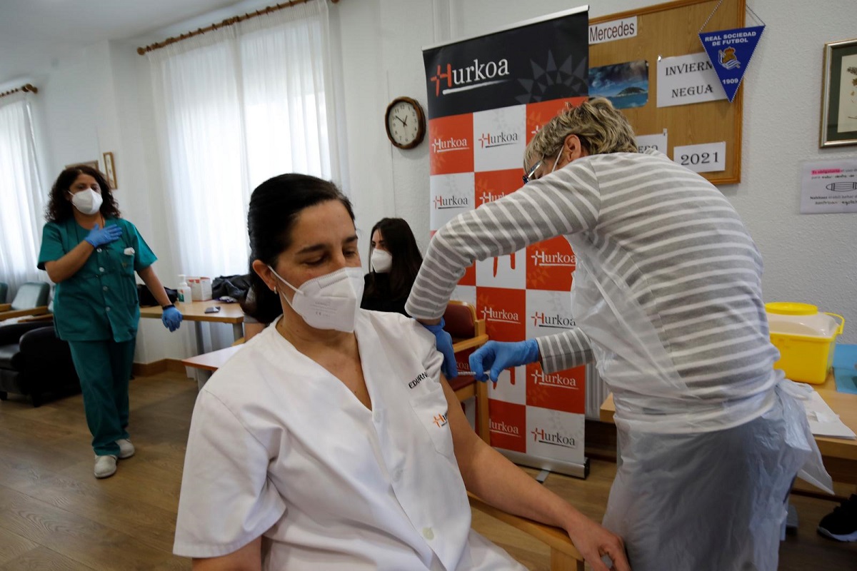 Hoy ha comenzado la campaña de vacunación entre las personas trabajadoras de los centros de día de Gipuzkoa que son menores de 55 años. 20 profesionales del centro Nuestra Señora de las Mercedes de Donostia han recibido la primera dosis de AstraZeneca, y la segunda la recibirán dentro de 10/12 semanas, tal y como lo indican las autoridades sanitarias.