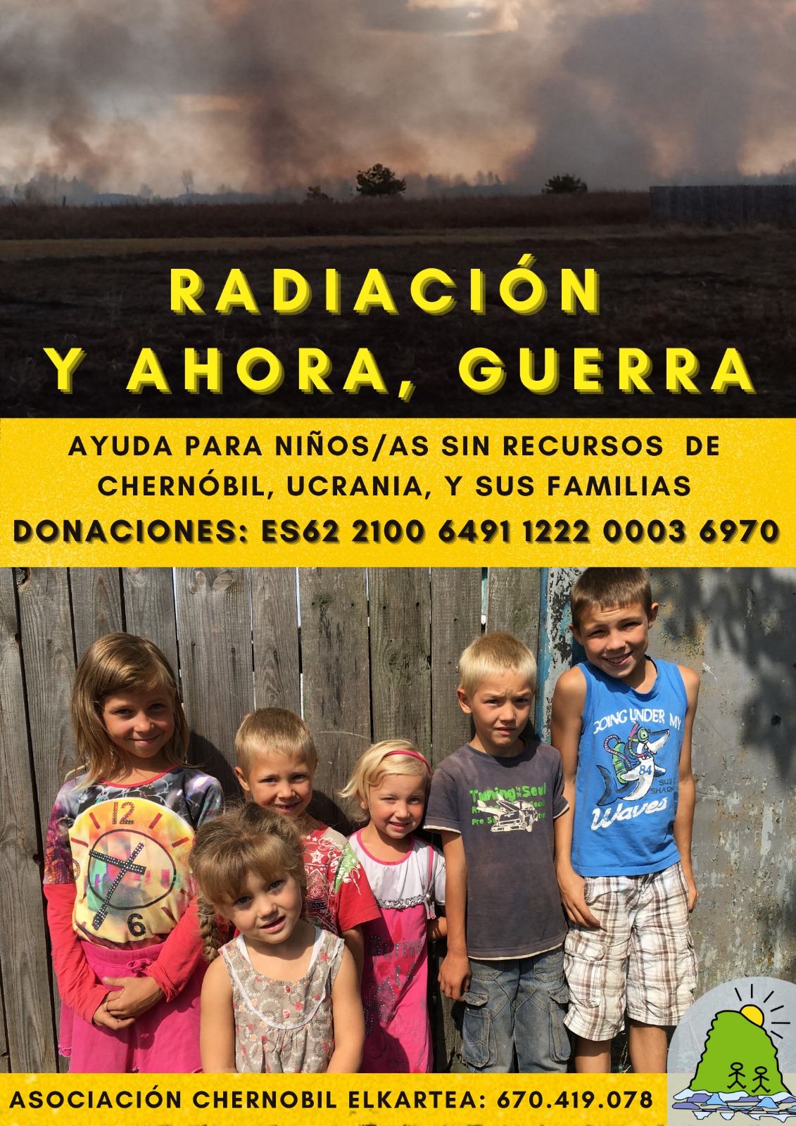 Asociación Chernóbil Elkartea (670419078): pide ayuda para niños sin recursos y sus familias. ES62 2100 6491 1222 0003 6970.