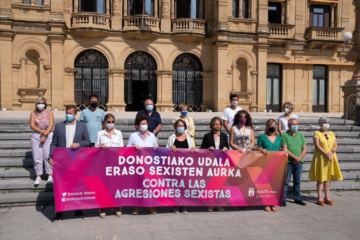 El Ayuntamiento de Donostia ha realizado una concentración este mediodía en Alderdi Eder para rechazar las últimas agresiones contra mujeres ocurridas en la ciudad. Concretamente la agresión a una taxista el pasado jueves en ejercicio de su trabajo y la detención de un hombre acusado de violencia de género durante el fin de semana.
