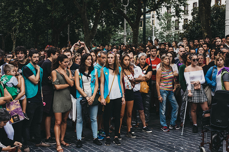 La Aste Nagusia ha tenido hoy su espacio reivindicativo cuando docenas de donostiarras se han concentrado en el Boulevard para mostrar su repulsa hacia los dos delitos de carácter sexual que han tenido lugar este fin de semana en Donostia.