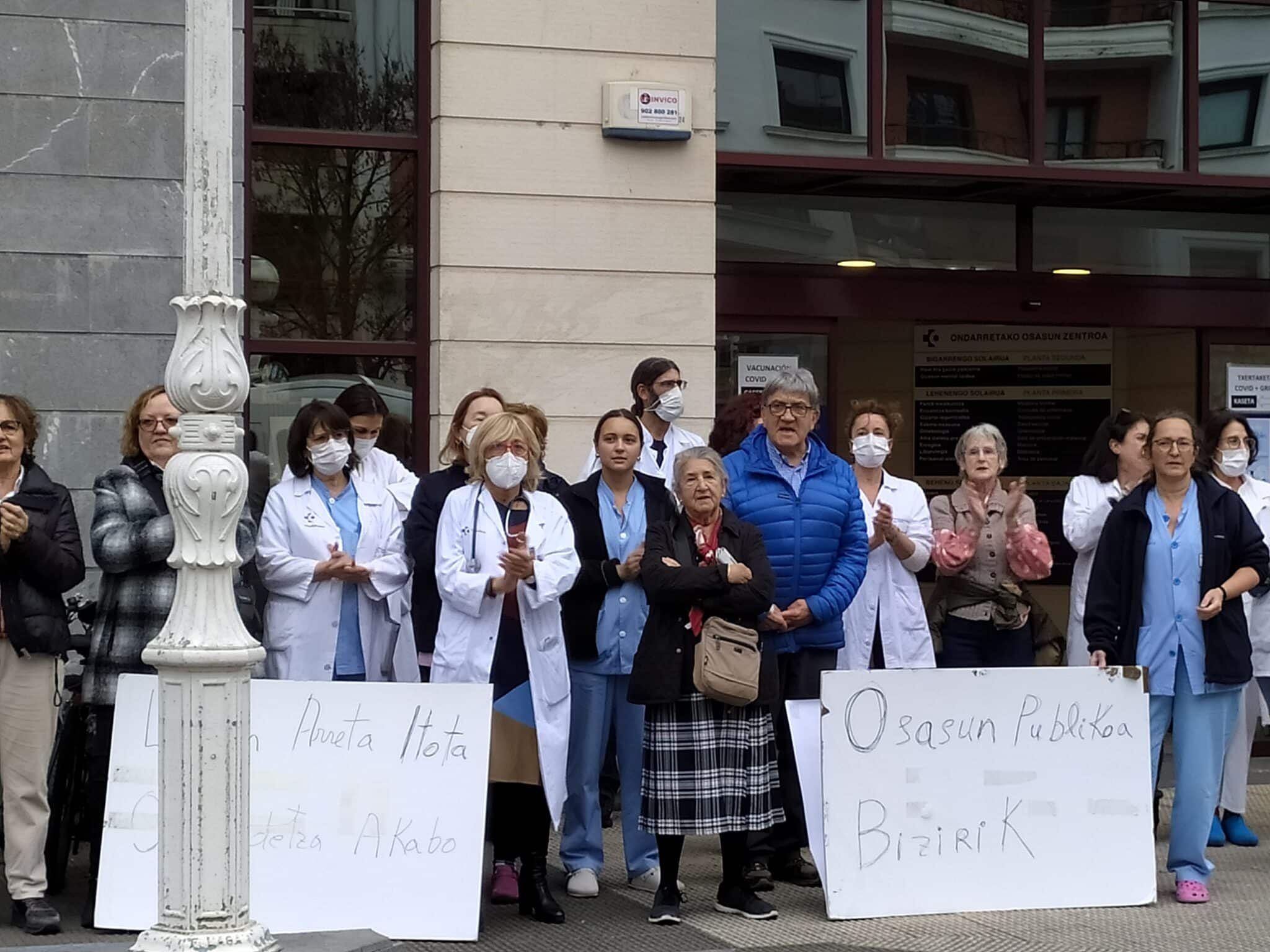 Esta mañana ha habido concentraciones ante los hospitales y centros sanitarios vascos en respuesta a la convocatoria de SATSE, ELA, LAB, SME, CCOO y UGT. Los presentes han denunciado el bloqueo de la Mesa Sectorial y «los graves problemas de Osakidetza», y continuarán con las movilizaciones después de las Navidades.