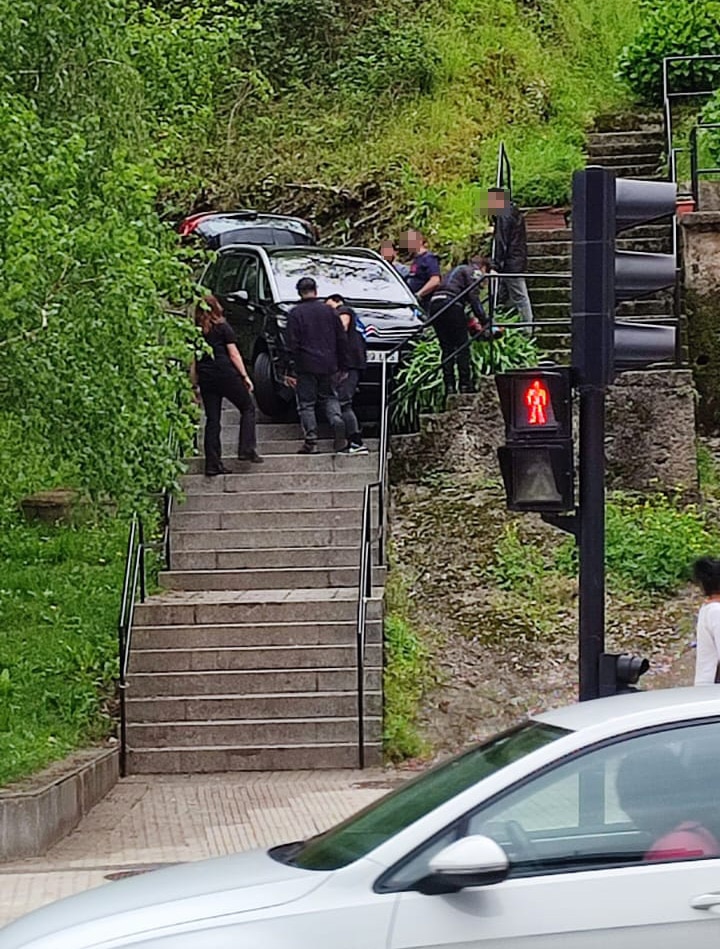 Un vehículo que circulaba por una calle secundaria paralela a la Avenida de Zarautz se precipitó por las escaleras que bajan desde el Parque de Luis Villasante, a la altura del número 86.