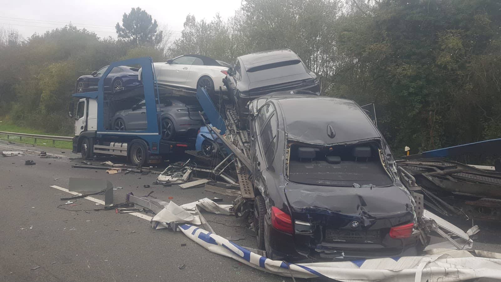 Uno de los dos camiones se ha incendiado, lo que ha obligado a intervenir a los bomberos y ha provocado el corte total de la vía hasta que se han extinguido las llamas.