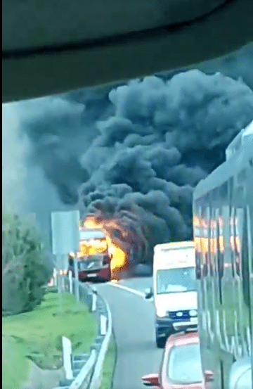 Autobús ardiendo #Ap8 Pk 33 #Orio sentido Cantabria carretera ❌cortada, retenciones