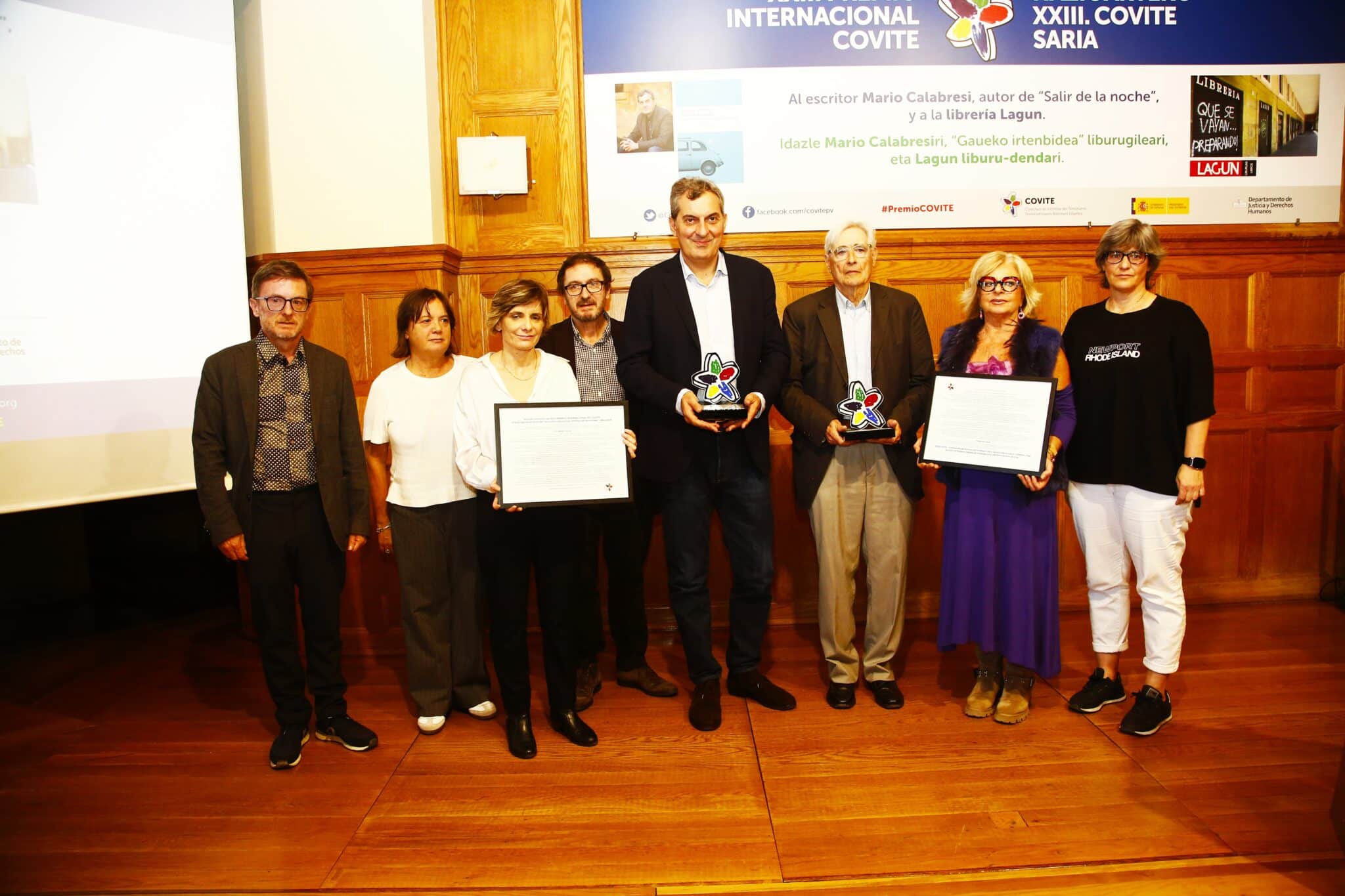 Latierro por su parte ha extendido el premio de Covite a quienes «levantaban la persiana» pese a los ataques a la librería Lagun, en especial a las recientemente fallecidas «Rosa y Teresa», viuda ésta última de José Ramón Recalde, que sufrió un intento de asesinato del que se salvó «de milagro».