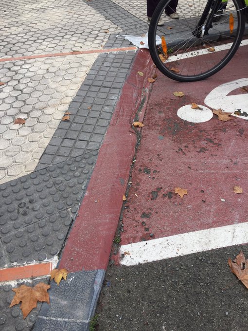 «A causa de las obras hay en el tramo del bidegorri junto a la escuela Amara Berri un escalon que sobresale. Las obras llevan un año y se prevé que vayan para largo. Lo que era provisional convirtiendo en algo permanente», afirman los vecinos del barrio.