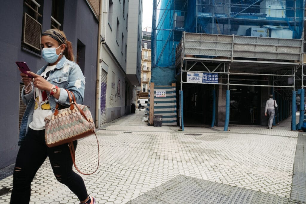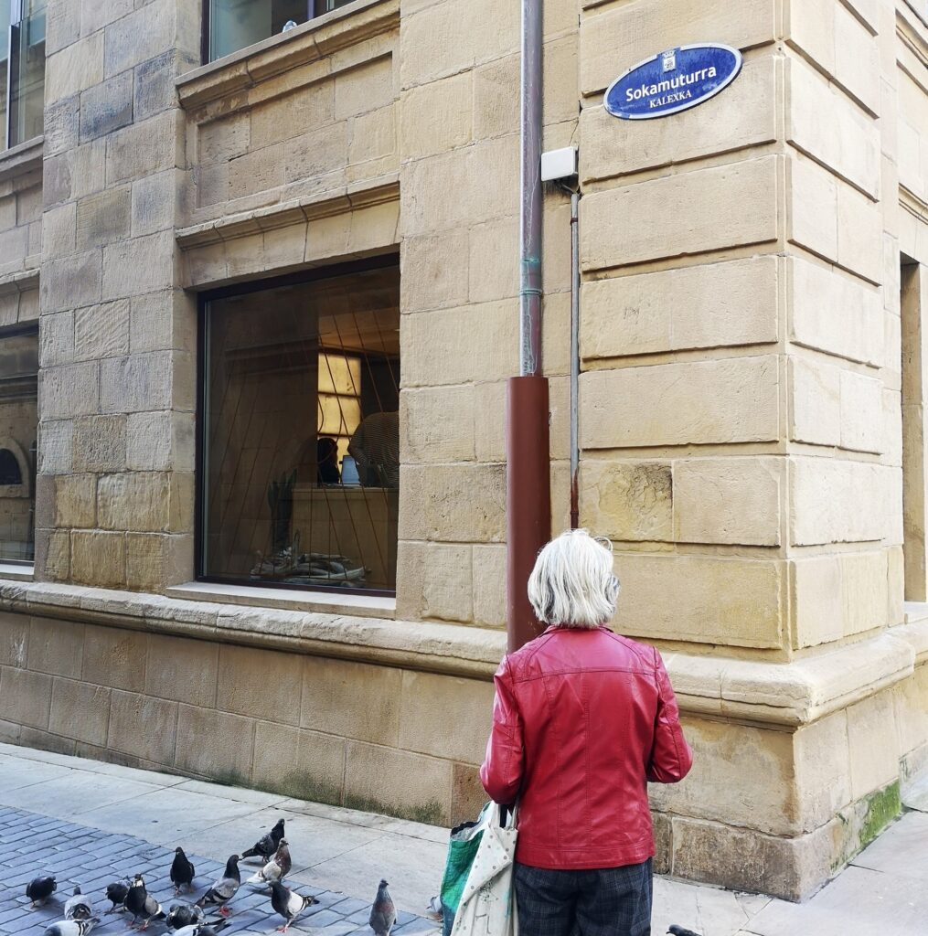Una señora saca de una bolsa de plástico un currusco de pan y da de comer a las palomas y las gaviotas del puerto. Lo hace con “prudencia”, asegura Begoña, ya que es consciente de que las ordenanzas municipales prohíben alimentar a los animales callejeros. Una bandada de pájaros aterriza caóticamente en la calle Sokamuturra de lo Viejo, entre la plaza de Lasala y la calle Mari, para hacerse con el botín. Hasta hace tres años, la vía más estrecha de San Sebastián -si se toman las medidas “desde los ejes de las calles”, puntualizan fuentes municipales- estaba vetada a los peatones y funcionaba como un aparcamiento de motocicletas. Begoña se despide de sus animalitos y al fondo de la callejuela, cortísima, la sombra da paso a la luz de verano que ilumina la bahía.