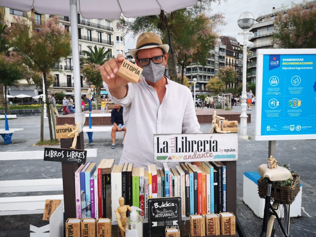 A unos metros, un genovés llamado Daniele Amalfitano capta la atención de locales y foráneos con un curiosísimo puesto de libros diminutos que él mismo, asegura, encuaderna a mano. Son cuentos, novelas, ensayos políticos, en muchos casos títulos de sobra conocidos como El Principito, El libro de la Selva, Romeo y Julieta, Utopía de Tomás Moro… “Los encuadernamos a mano con hilo y siempre con las ilustraciones originales. Viene con una frase del autor y, por último, cada librito tiene un imán”. Una pareja ve la colección de miniatura y queda maravillada: “¡Cómo mola!”. Mientras el cielo aguante y no le sorprenda un aguacero, el locuaz Daniele se empeñará en vender literatura tamaño XS.