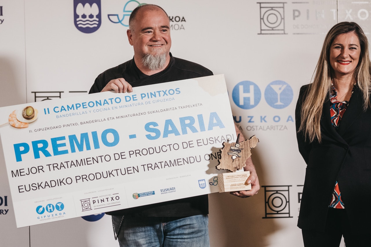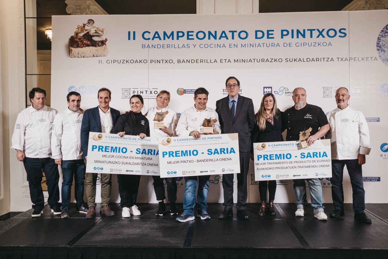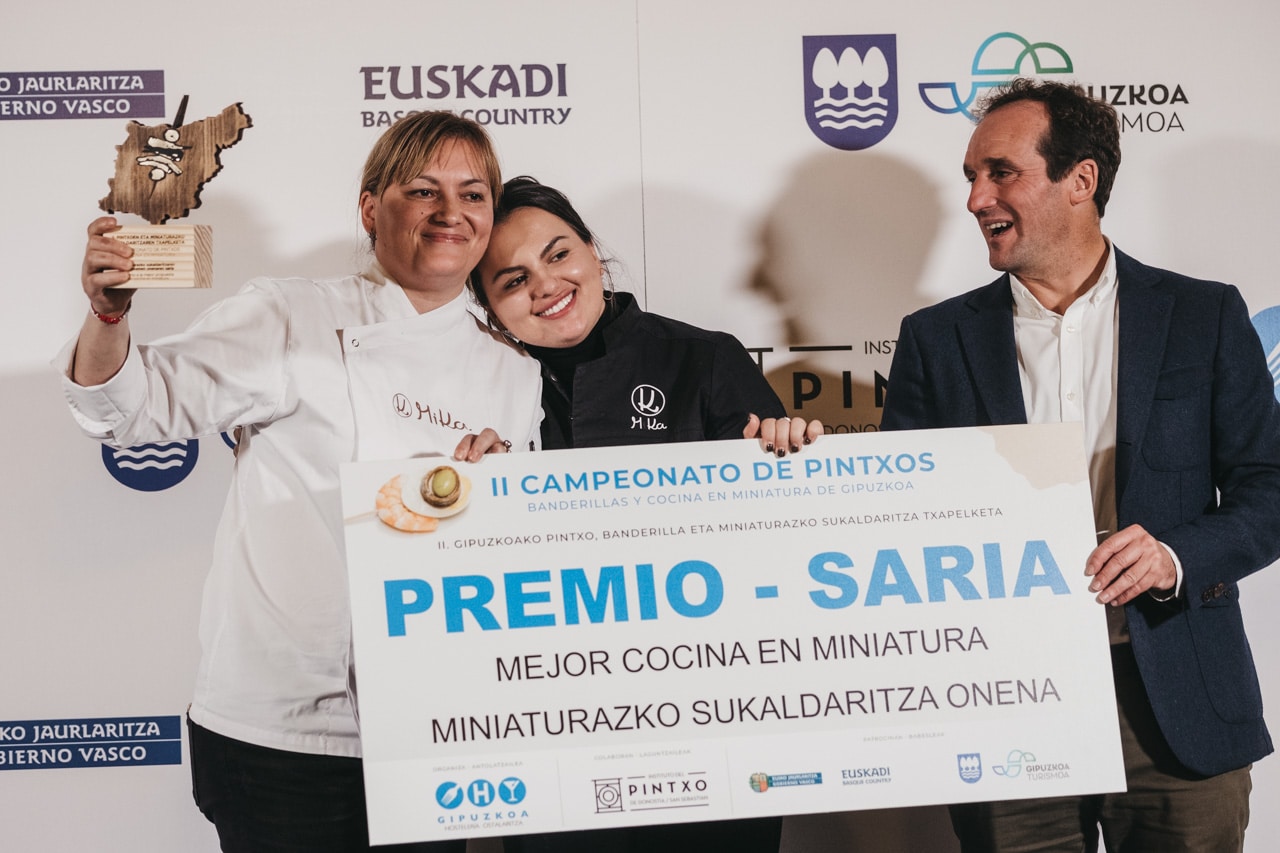 El premio a la mejor propuesta de Cocina en Miniatura lo entregó Iker Goiria, director de Turismo de la Diputación Foral de Gipuzkoa, y fue para la propuesta “Recuerdos de la infancia” del establecimiento Mika Jatetxea de Hondarribia. Y el premio al Mejor Tratamiento de los productos de Euskadi lo entregó Arantza Ciaurriz, en representación de la Junta Directiva de la Asociación de Hostelería de Gipuzkoa, y fue para el Pintxo “Udazkena”, creación de Xera Gastroteka de Errenteria.