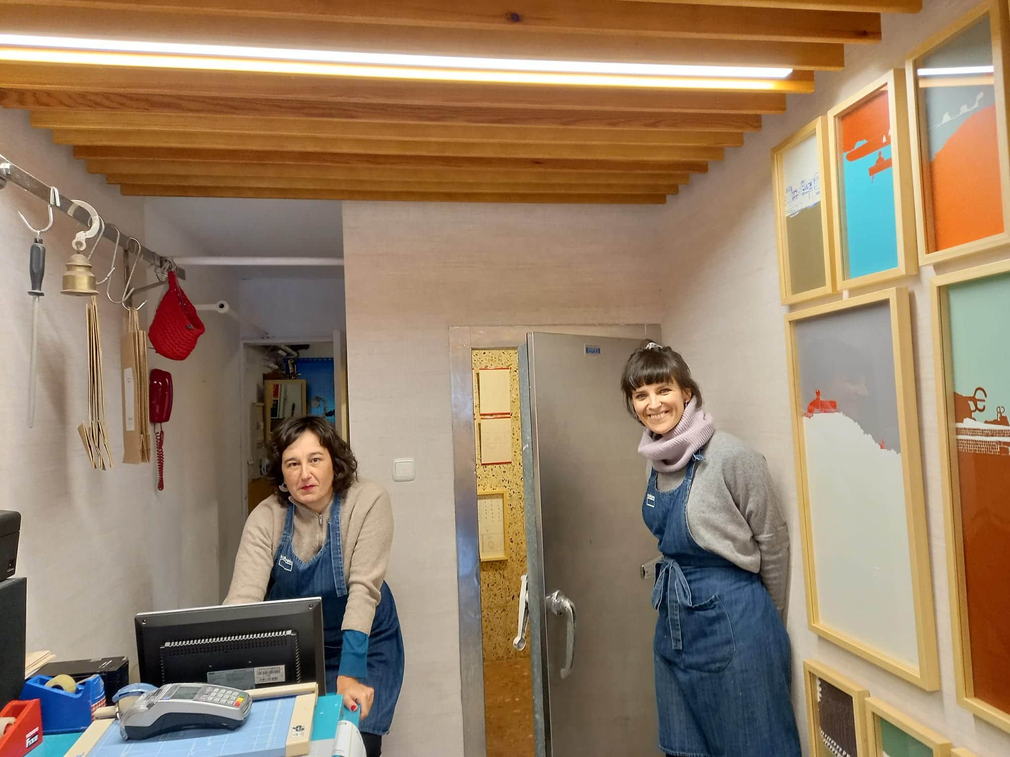 No es la nevera el único vestigio de la carnicería de San Jerónimo. En Koloreka también se ven unos ganchos colgados de la pared que le dan un toque curioso a este particular comercio que vende retratos de una Donostia alejada de la postal oficial. Y que ocho años después de abrir sus puertas anima también a disfrutar de exposiciones.