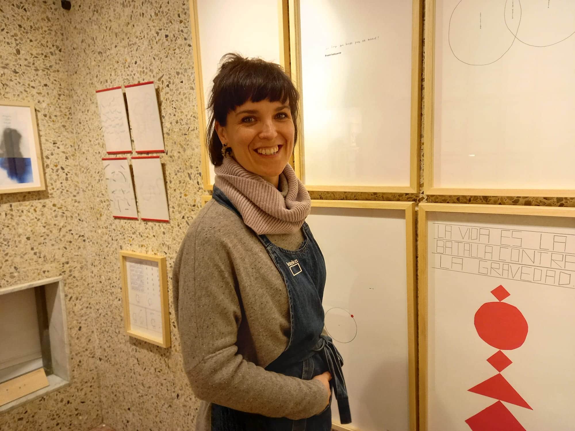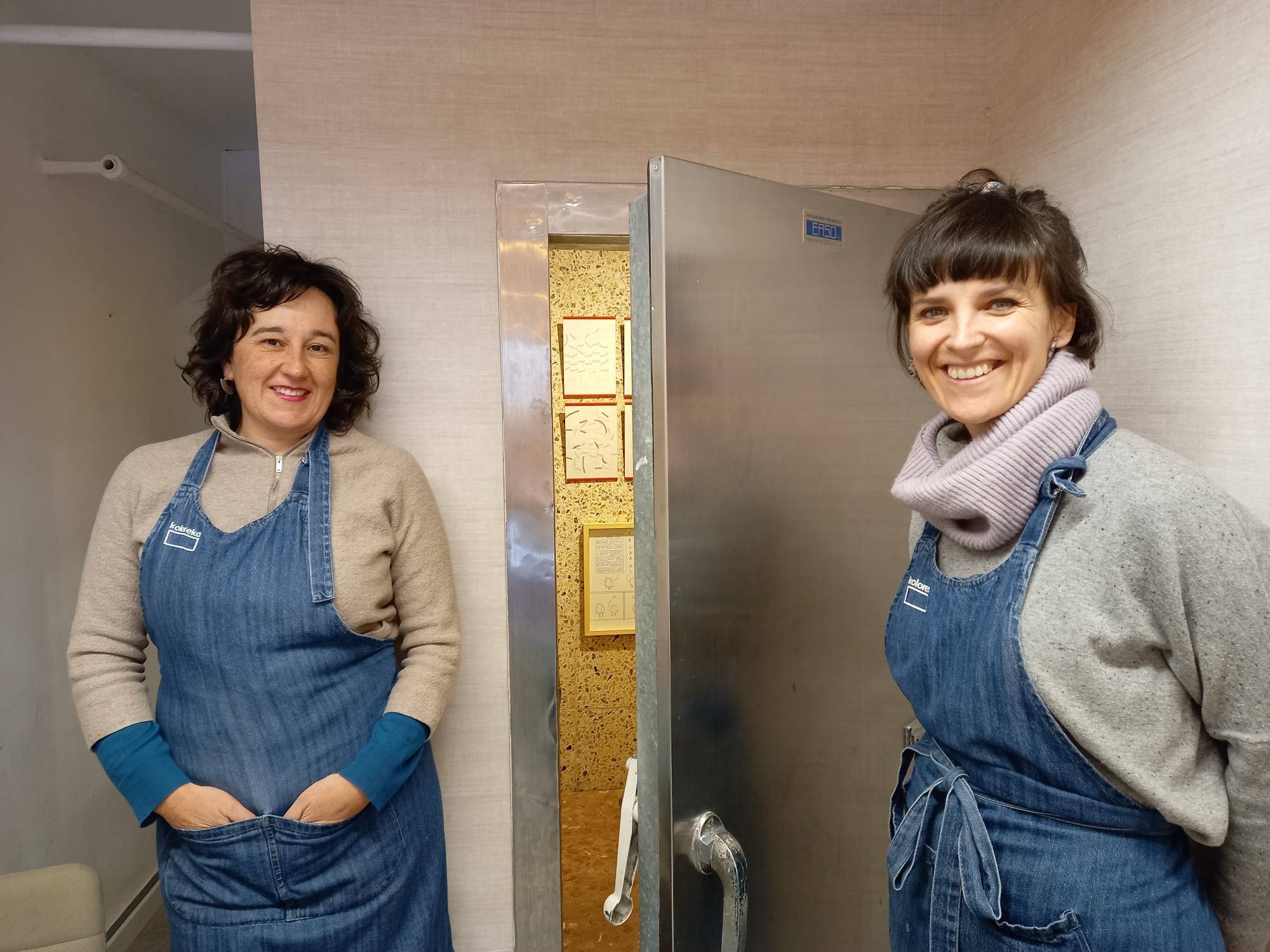 Con el tiempo la nevera se convirtió en trastero y en taller, pero Urrestarazu la miraba de reojo con ganas… y ocho años después se ha lanzado por fin a vaciarla hasta dejar relucientes los cinco metros cuadrados de terrazo. Cinco metros cuadrados que años atrás albergaban piezas de carne y ahora brillan con la obra de la ilustradora Ane Zaldibar, que trabaja codo con codo con Urrestarazu, y que ha sido la encargada de inaugurar ‘La Nevera’.