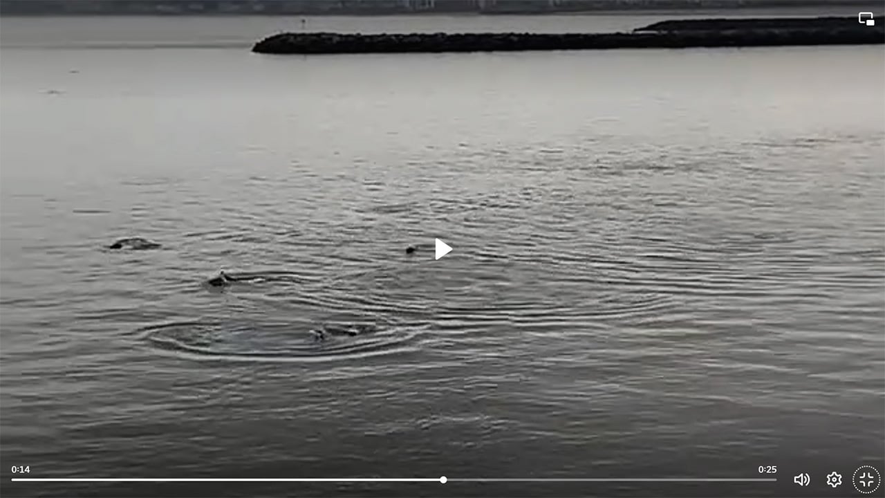 Un paseante graba a varios cetáceos pegados a la playa esta mañana