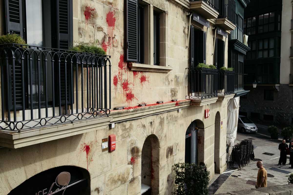 El concejal de Cultura, Euskera y Turismo, Jon Insausti, ha denunciado hoy que «unos encapuchados» lanzaron ayer domingo pintura contra la fachada del hotel Sansebay de la calle Mari de San Sebastián. Precisamente hoy, pasado el mediodía, trabajaba un operario para limpiar las manchas rojas.