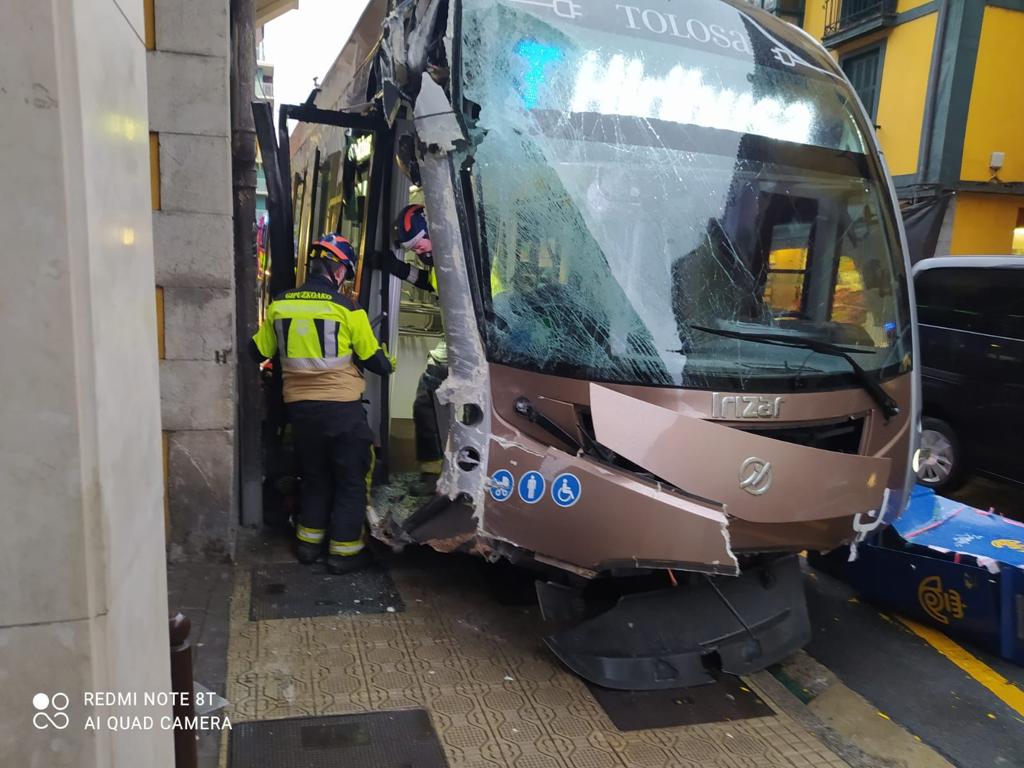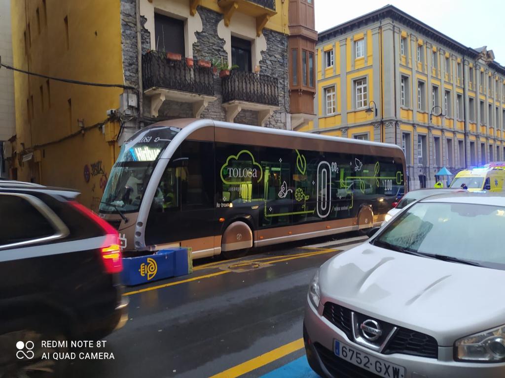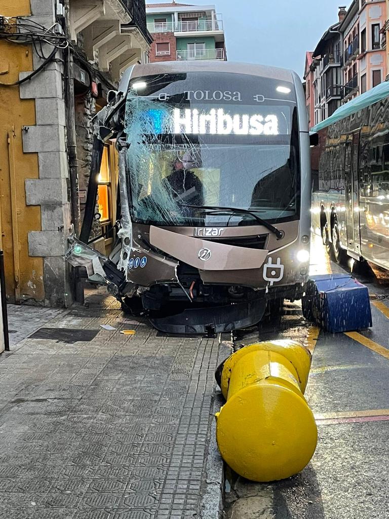Con daños materiales y un buen susto se ha saldado esta mañana, antes de las 9 horas, el accidente de un autobús urbano contra una esquina de la calle Rondilla de Tolosa, donde está situada la pastelería Eceiza, local donde se ha empotrado el citado vehículo que también se ha llevado por delante un buzón y una señal.