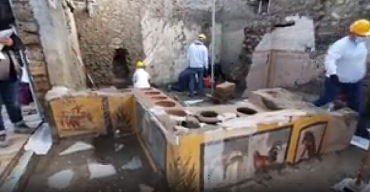 El mostrador del local tenía forma de «L» y en sus huecos se insertaban ánforas llenas de comida caliente, de las que se servían «tapas» variadas de cabrito, caracoles, paella o frijoles, ricos platos de comida rápida de hace casi 2.000 años.