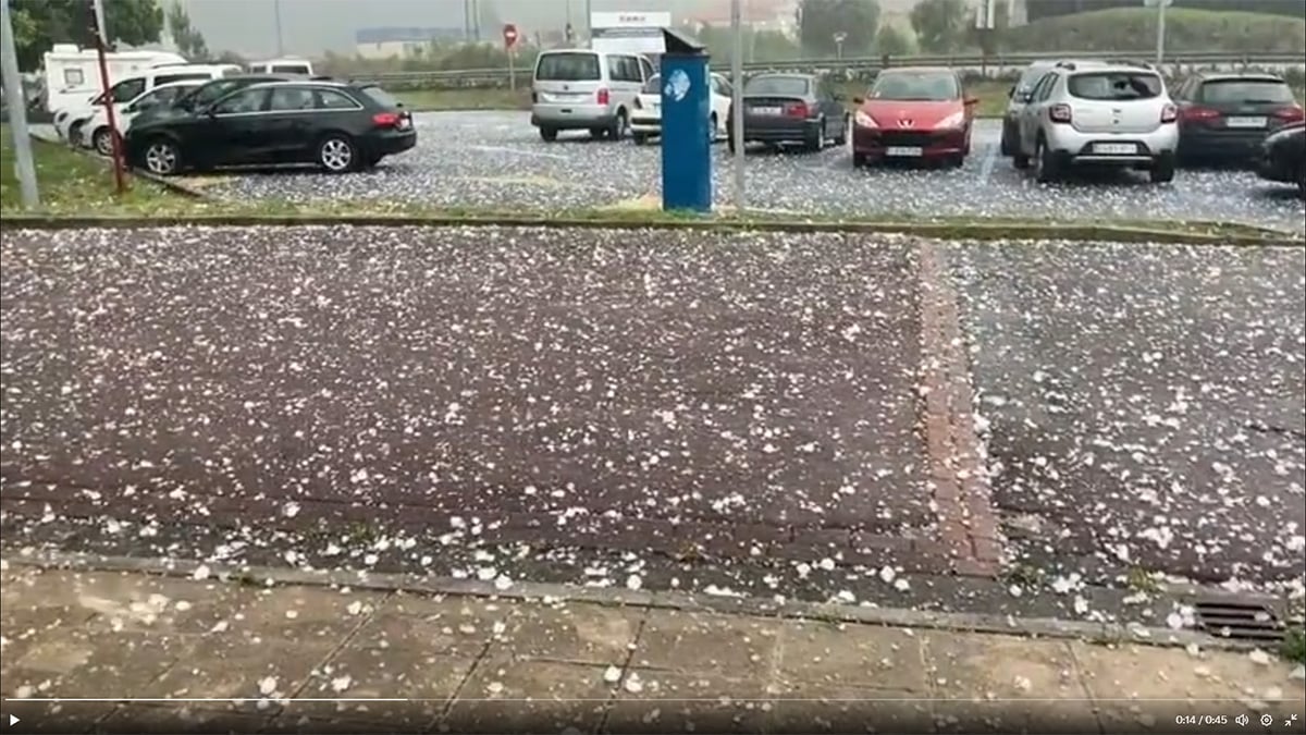 Fuentes de la Policía Municipal han informado de que la granizada se ha producido entre las nueve y media y las diez de la mañana, y que cuando ha arreciado, durante unos cinco o seis minutos, «ha sido terrible», con granizos enormes que también han causado daños en los canalones de algunos edificios.