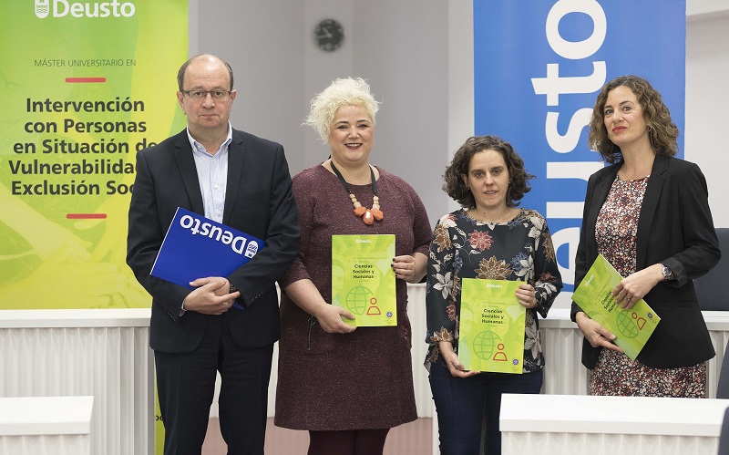 El Departamento de Trabajo Social y Sociología de la Universidad de Deusto ha presentado el nuevo máster en ‘Intervención con Personas en situación de Vulnerabilidad y Exclusión Social’ organizado en colaboración con la Diputación y el SiiS (Fundación Eguía-Careaga Fundazioa) que se impartirá el próximo curso académico 19/20 en el campus de San Sebastián. En la jornada han participado Mabel Segú, coordinadora del área de Trabajo Social de la Facultad de Ciencias Sociales y Humanas de la Universidad de Deusto, la diputada Maite Peña y Raquel Sanz, SiiS (Fundación Eguía-Careaga Fundazioa).
