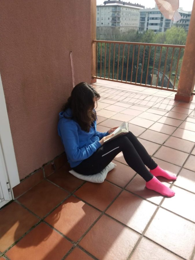 Mi día a día es de lo más normal, de hecho creo que es el que hace la mayoría de la gente en este caso. A las mañana hago ejercicio para cansarme un poco, al estar en casa y no moverme llega un punto que a la hora dormir, cuesta. A la tarde sí que leo en la terraza, me pongo a ver películas, series, a estudiar, pues tenía un examen que me han retrasado.