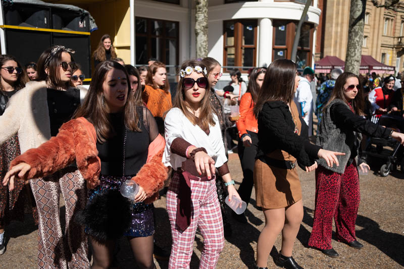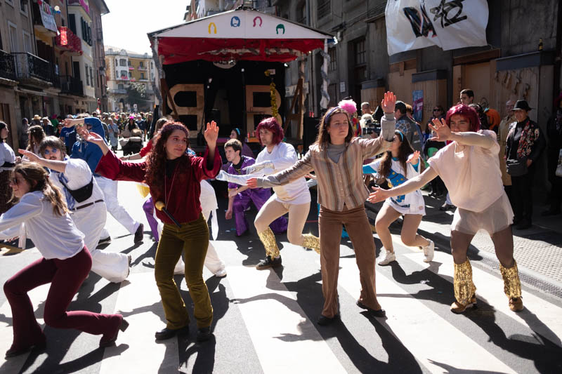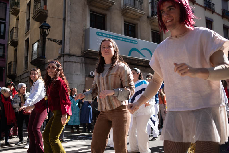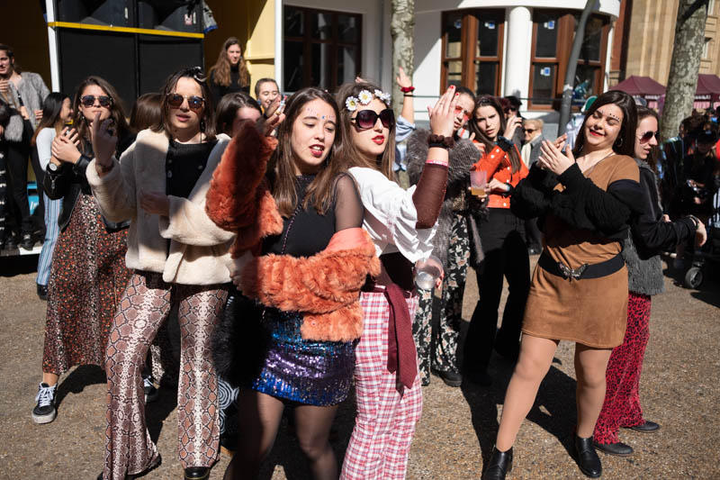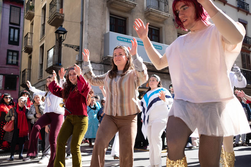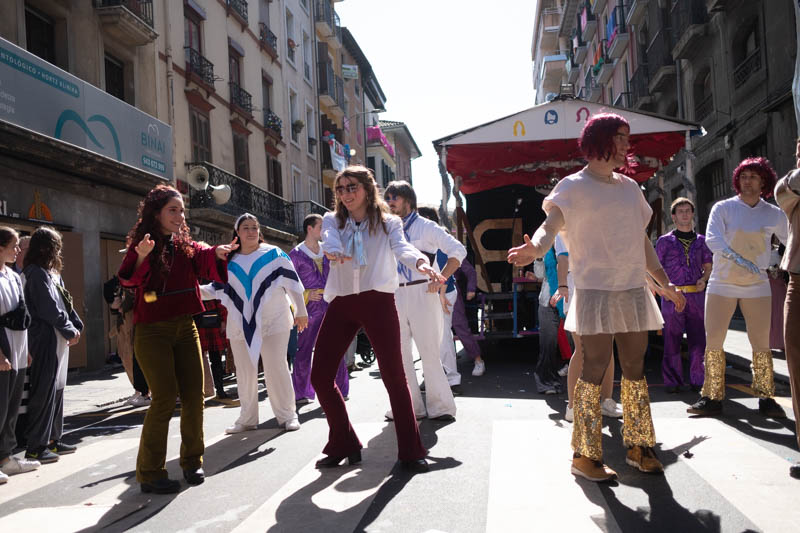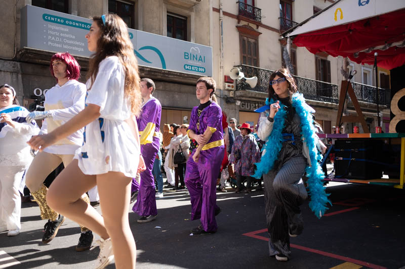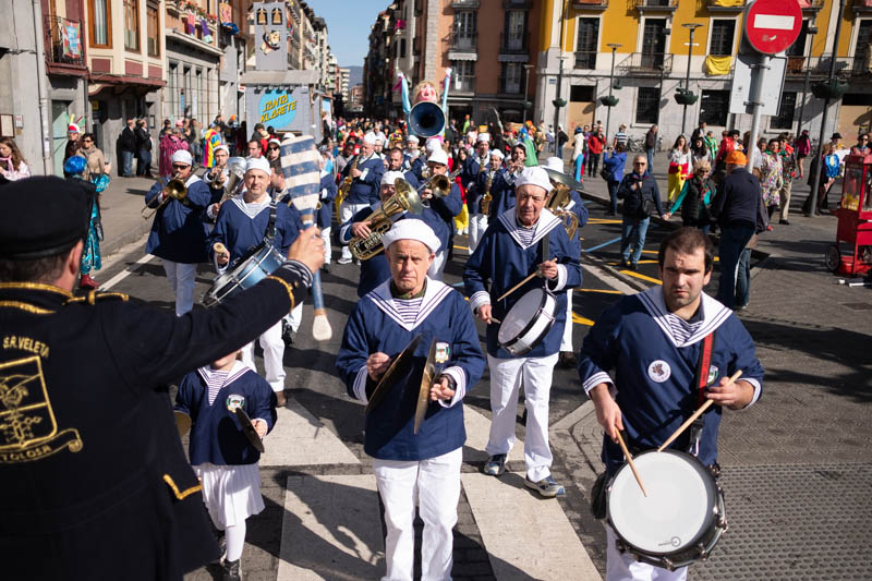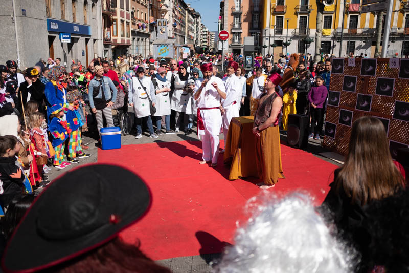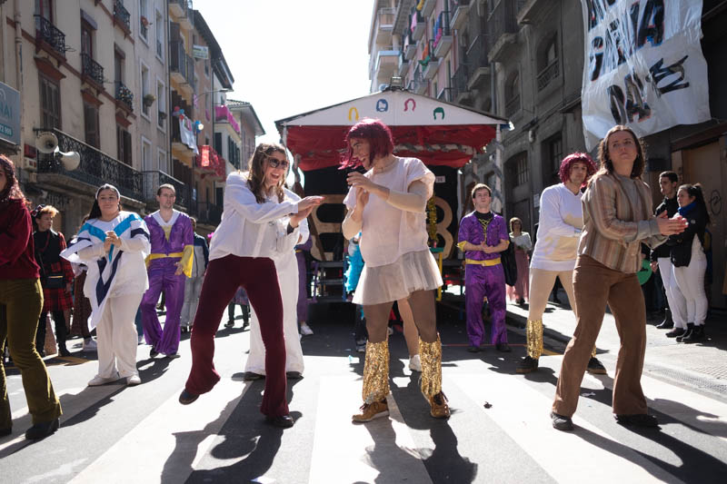 Las txarangas en la plaza Nueva han puesto música en una jornada en que las comparsas y las carrozas más ocurrentes han sido motivo de delirio para los espectadores y también para los participantes.