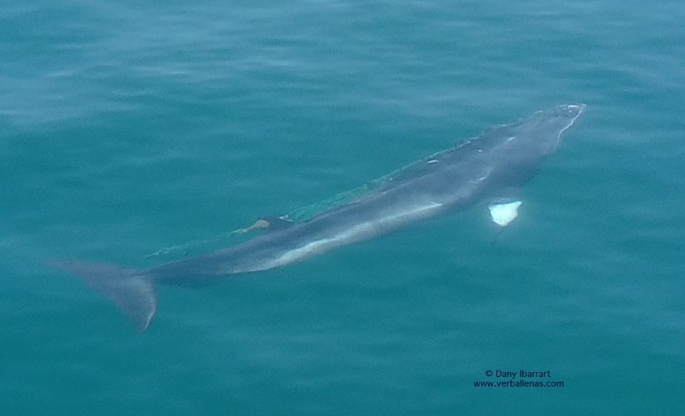 Las redes vuelven a hacer estragos en la fauna marina. Ayer una pequeña ballena de la especie Rorcual aliblanco fue avistada en el puerto de Getaria con una red enganchada en su boca. Desde verballenas.com solicitan a la ciudadanía ayuda para poder asistir a este mamífero.