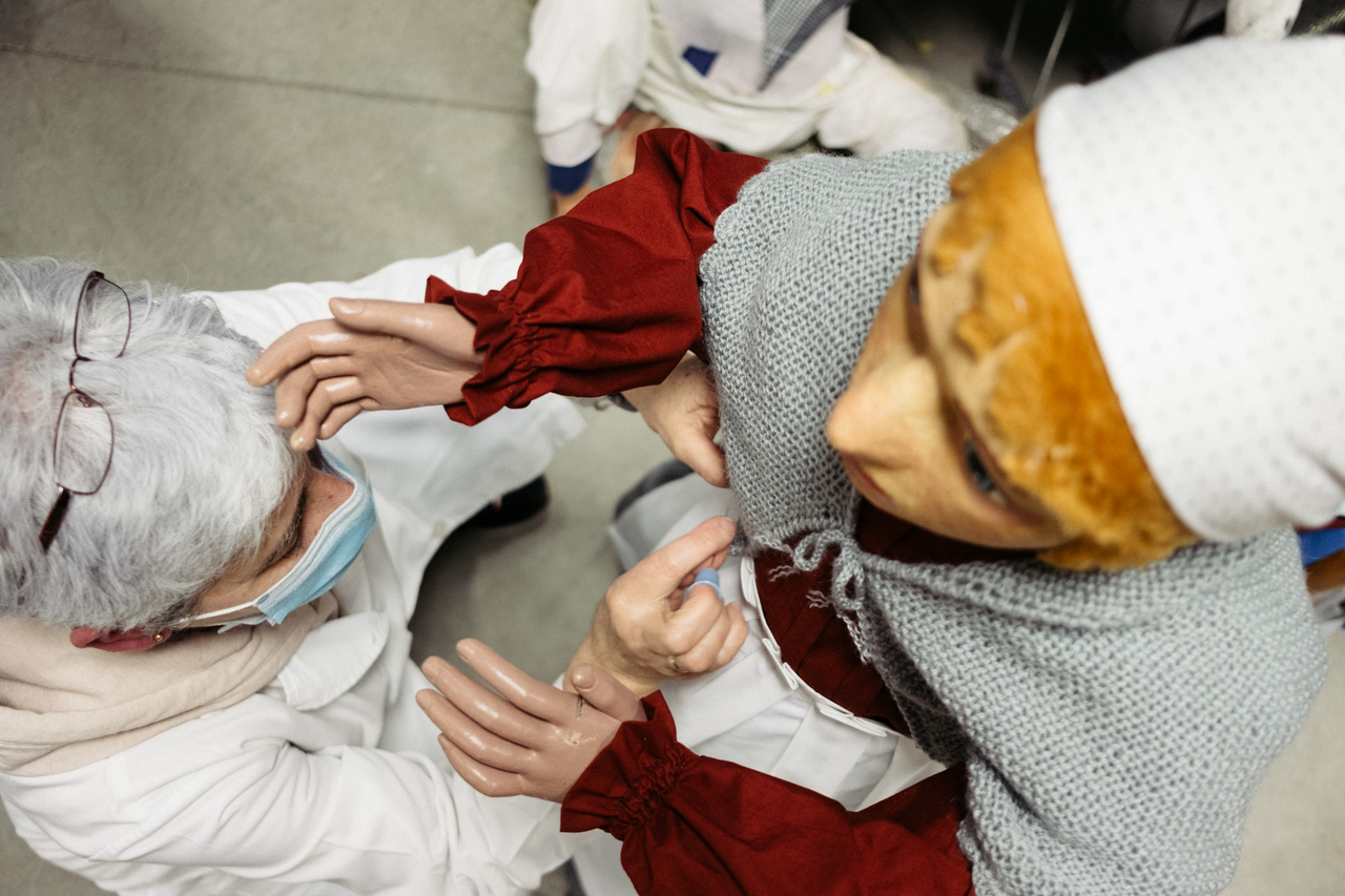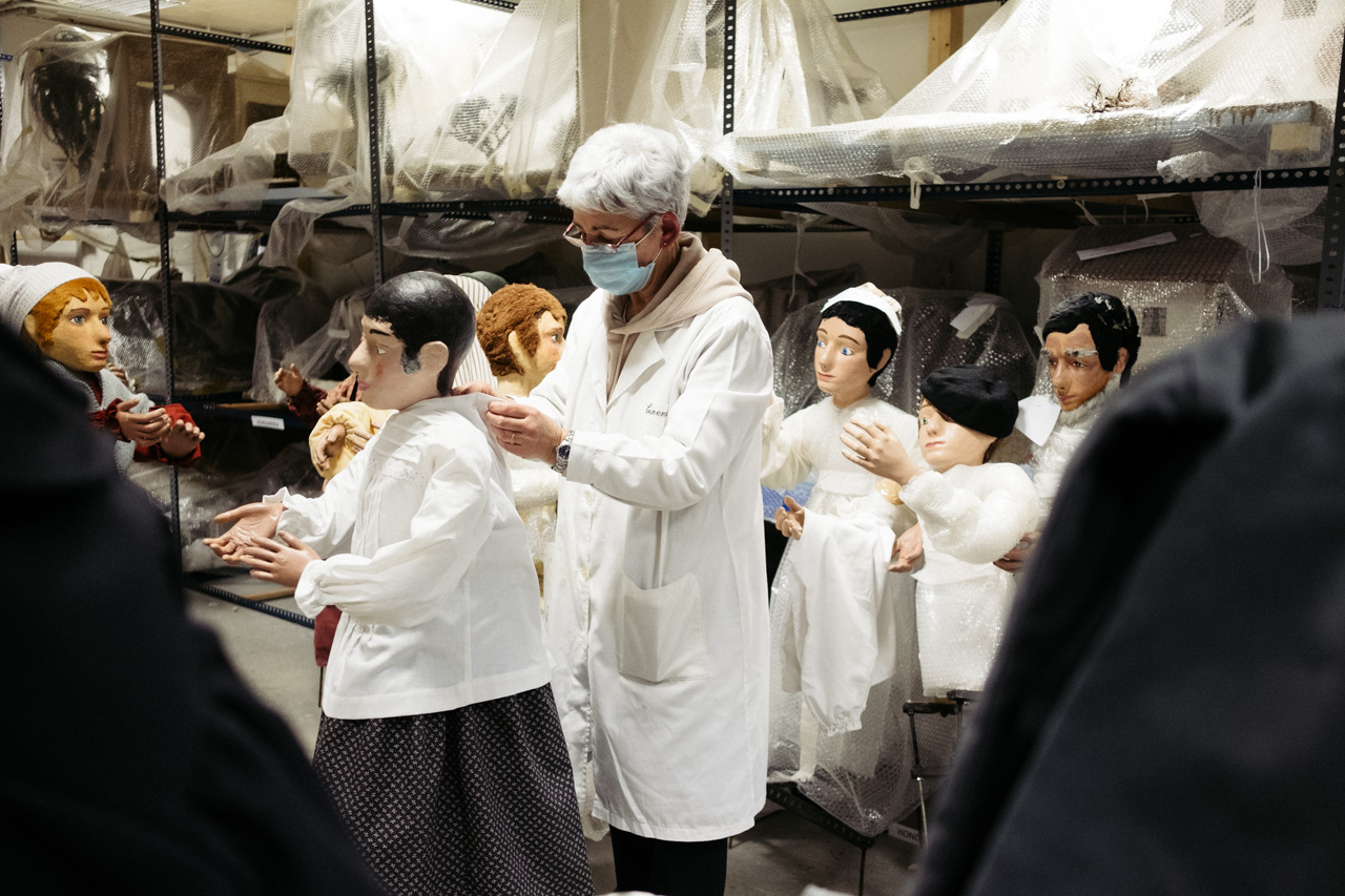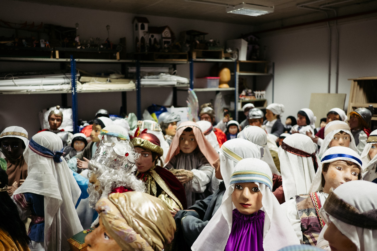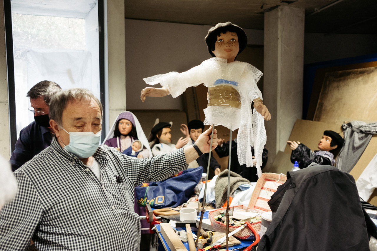 No hay otro belén igual en Donostia. Compuesto por un total de 150 figuras de un metro de altura, desde hace más de 60 años campan a sus anchas en la plaza de Gipuzkoa durante un mes entero y se convierte en una cita ineludible de la Navidad. Un clásico que ha trascendido regímenes políticos, modas y gustos, y que atrae a niños, adultos -creyentes o no- y, por qué no, también a amantes de lo creepy y la iconografía kitsch. Después del día de Reyes el belén desaparece de la plaza como por arte de magia y vuelve a colocarse en el mismo lugar, restaurado y adecentado, 11 meses después. Normalmente, no se menciona su paradero ni se sabe qué ocurre exactamente con las piezas el resto del año, ni se tiene información de quiénes son los que las cuidan y tratan como es debido.