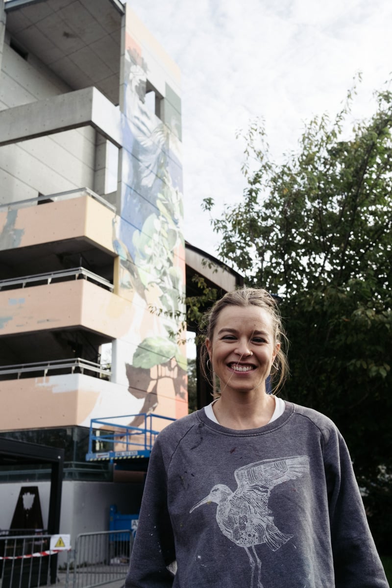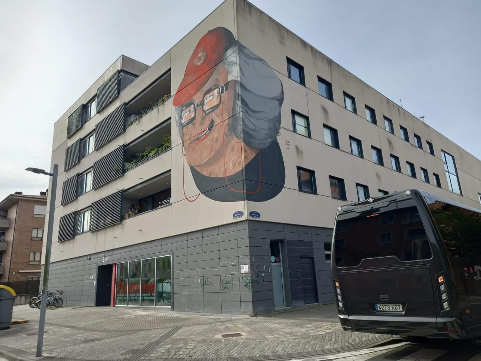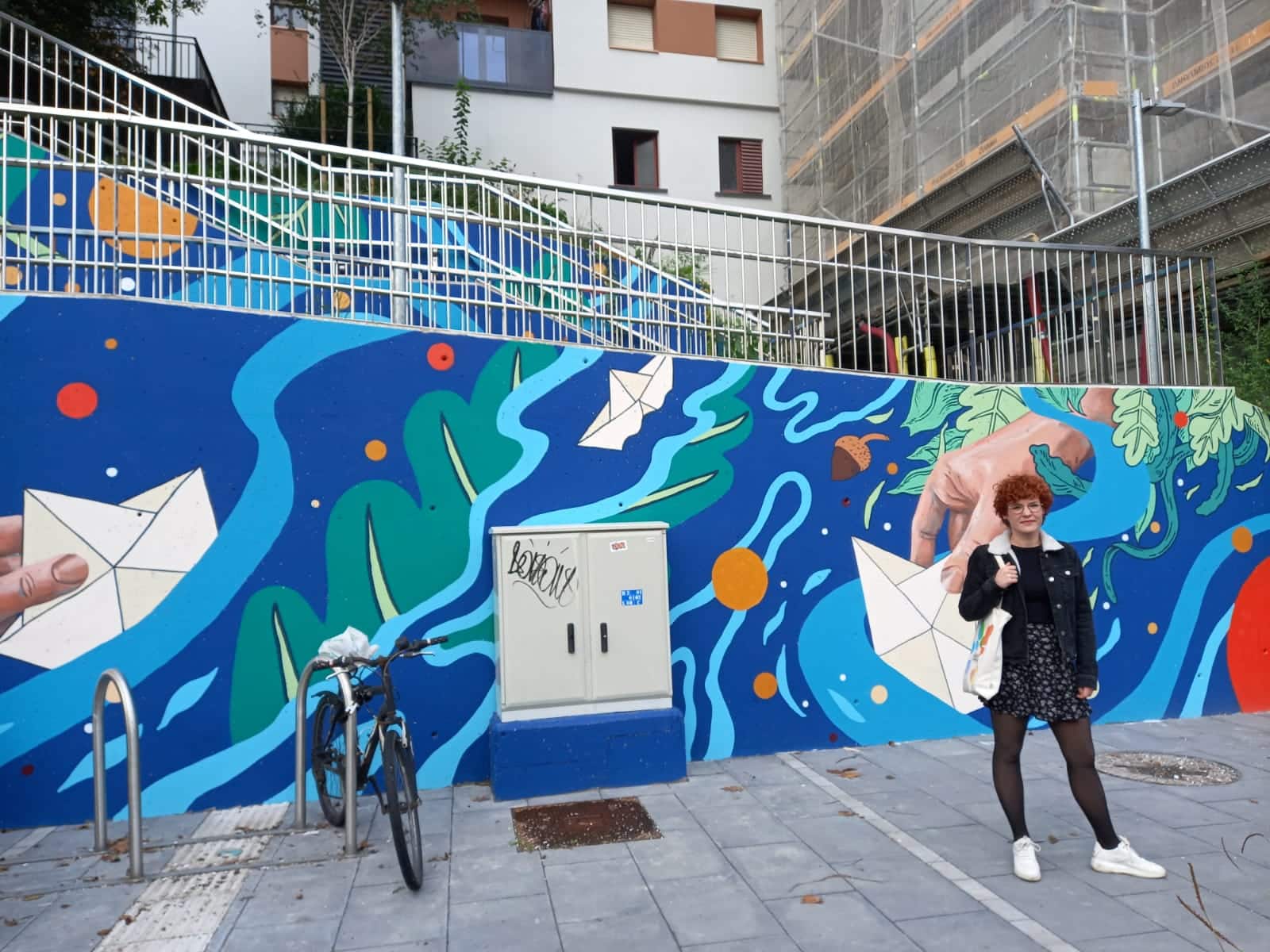 Enfrente y cerrando esta nueva edición de Donostia Apain, a falta aún de la actuación de chileno Kol3jo en Ur Kirola, ha trabajado la catalana Marina Capdevila en la fachada del centro Etxarriene del barrio.