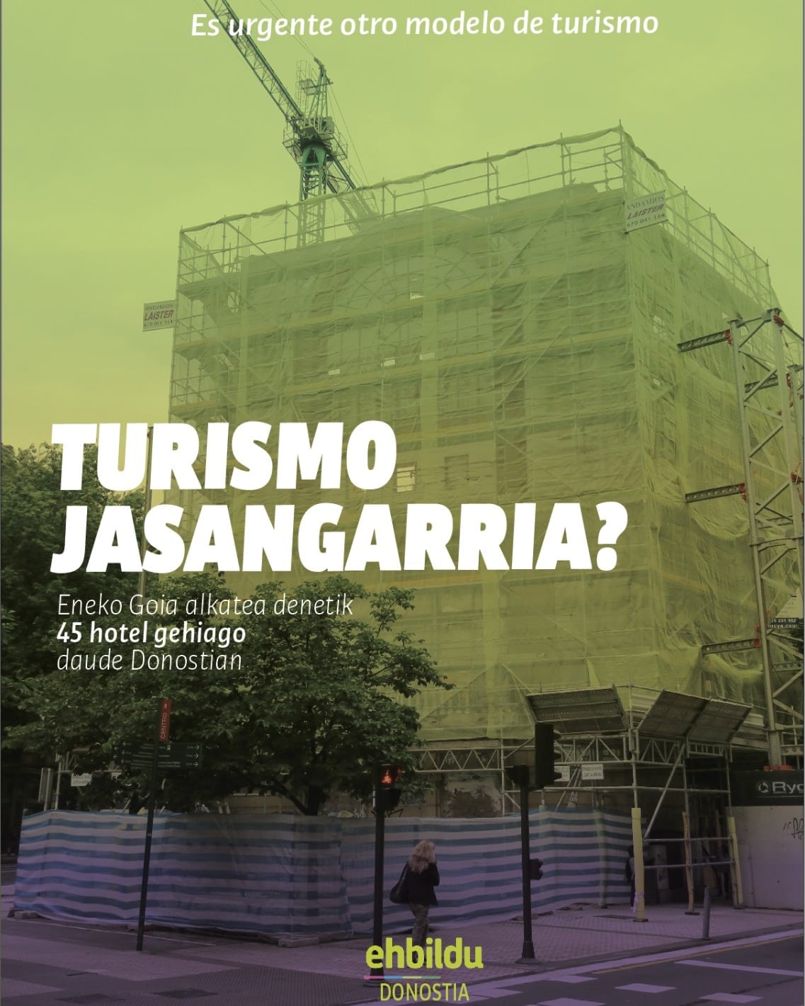 Considera EH Bildu que en vez de cambiar la mentalidad ciudadana, habría que cambiar el modelo turístico y añade que la iniciativa lanzada por el Consistorio «también busca comunicar, durante el año 2023, que el Gobierno municipal del PNV y el PSE están trabajando desde hace años para conseguir un Turismo sostenible y equilibrado, lo cual es, cuando menos, políticamente cuestionable».
