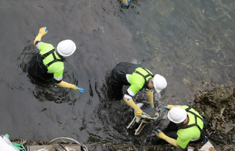 En el operativo han participado dos equipos de operarios, uno a cada lado de los puentes citados, con tres trabajadores en el agua durante las fases de bajamar «y equipados con la indumentaria adecuada», sigue la nota: «Traje de neopreno, botas de agua alta, guantes anticorte con manga y casco de seguridad». De nuevo es significativa esta minuciosa descripción, después de que hace dos semanas el concejal Borja Corominas (PP) y otros correligionarios escenificaran una limpieza por su cuenta en el río.