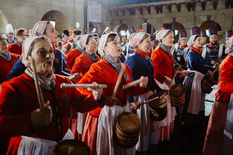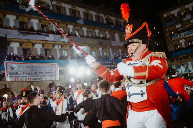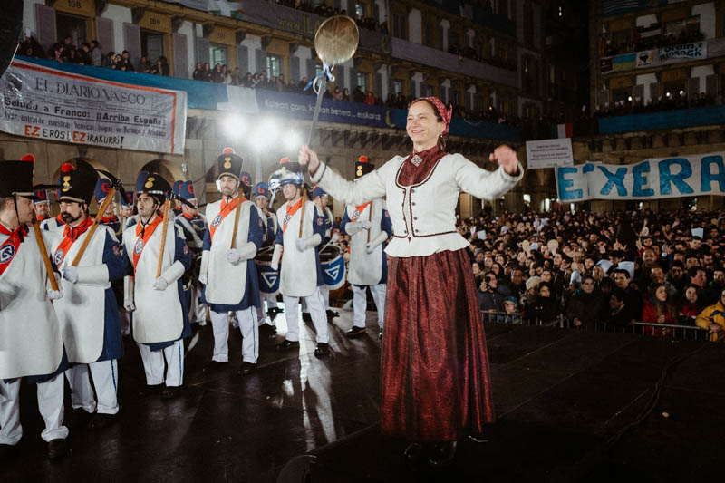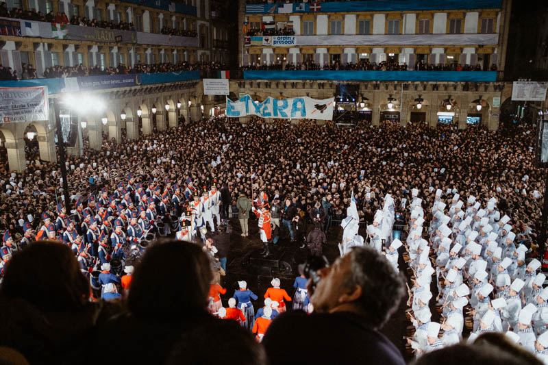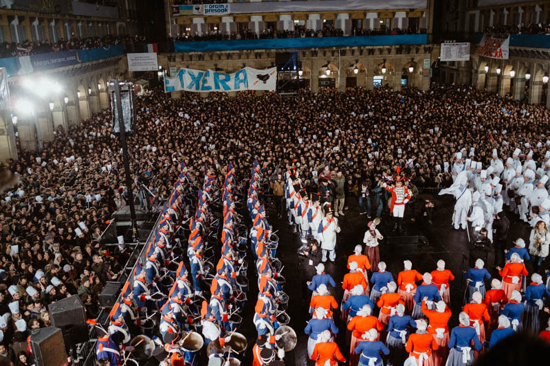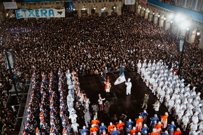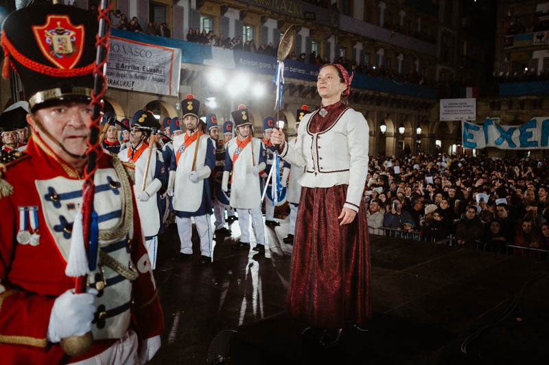 Con la Plaza de la Constitución a rebosar, con los trajes de soldado y cantineras y las marchas de Sarriegui, con la piel de gallina y entre coros ha comenzado el Día de San Sebastián puntualmente y se ha extendido como una mecha al resto de la ciudad, donde hasta mañana se vivirá el día más grande.
