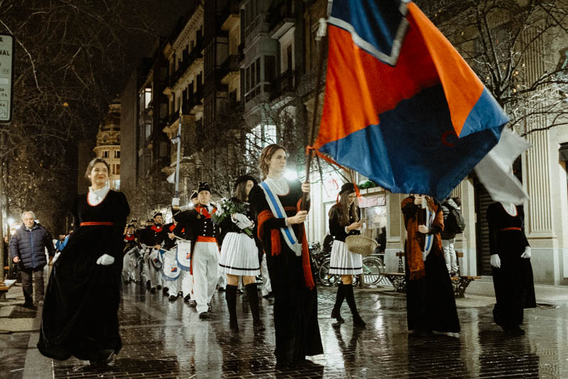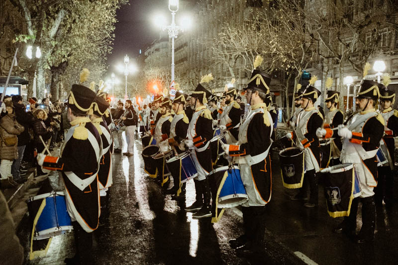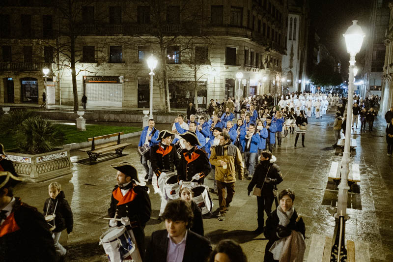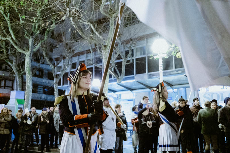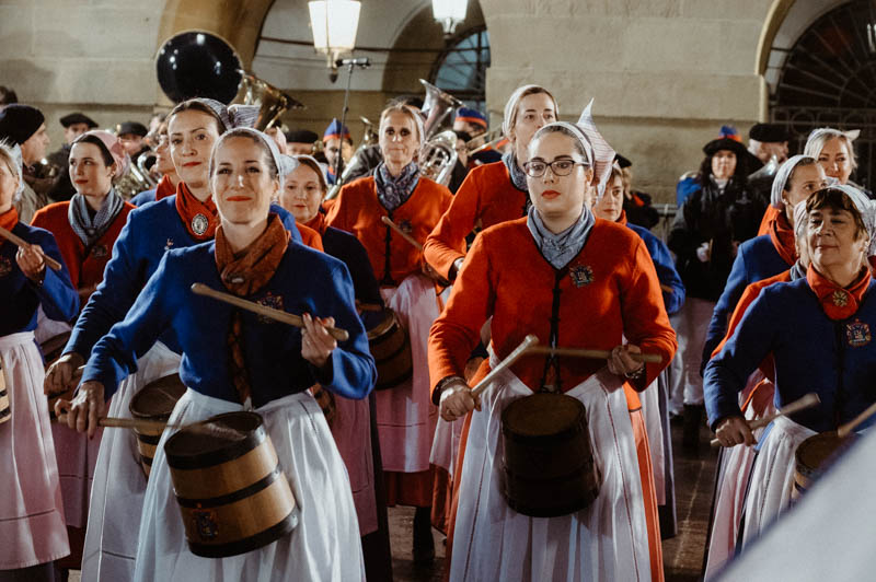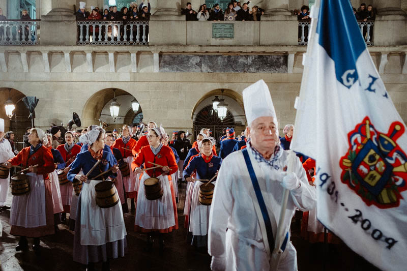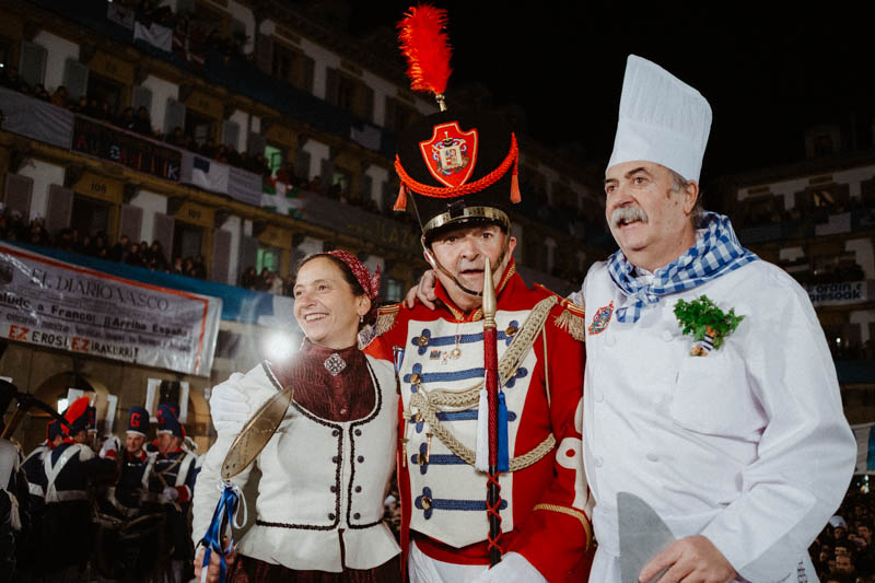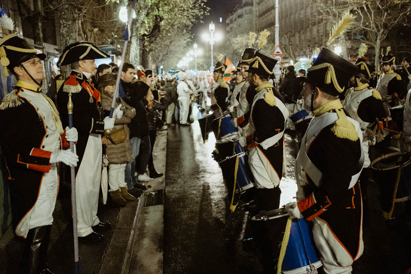 Con la Plaza de la Constitución a rebosar, con los trajes de soldado y cantineras y las marchas de Sarriegui, con la piel de gallina y entre coros ha comenzado el Día de San Sebastián puntualmente y se ha extendido como una mecha al resto de la ciudad, donde hasta mañana se vivirá el día más grande.