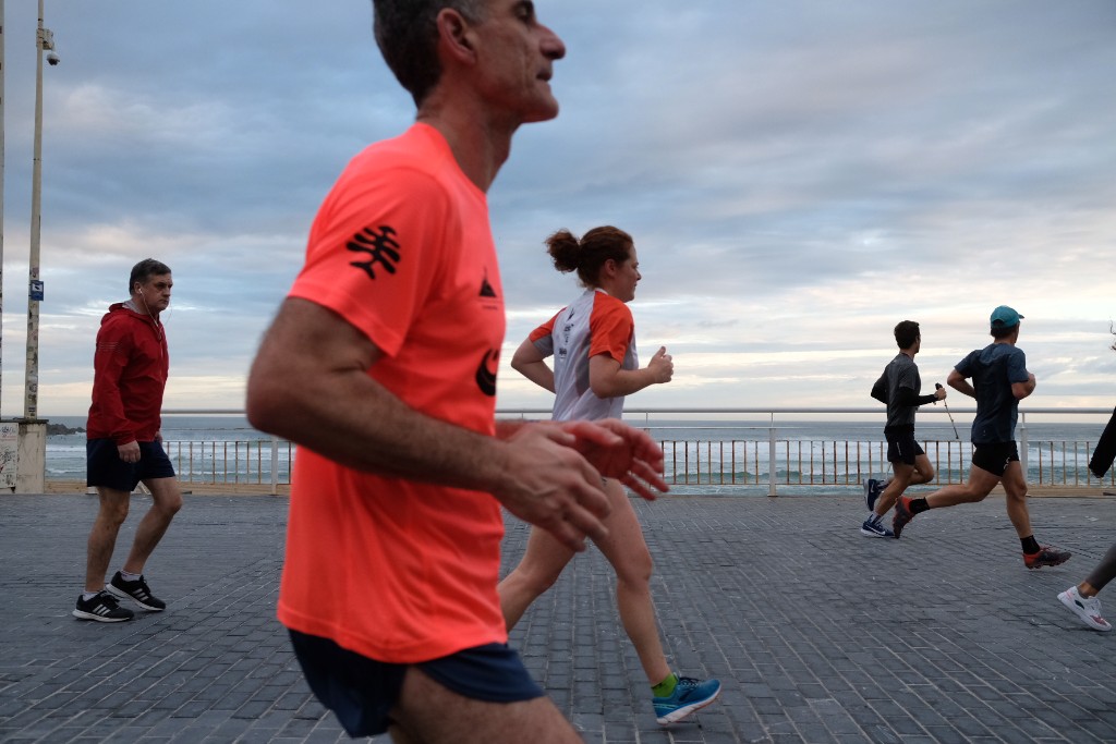 Desempolvarse de encima un mes y medio de encierro y lanzarse a la calle a estirar los músculos notando el aire en la cara bien merece un madrugón. No eran muchos los donostiarras, pero sí unos cuantos y a primera hora de la mañana se notaba en la calle un ambiente distinto. Desde hoy el confinamiento da una nueva tregua. En esta ocasión para los mayores de 14 años que quieren estirar las piernas, de 6 a 10 y de 20 a 23 horas, y para los mayores de 70 años y dependientes de 10 a 12 y de 19 a 20. Los menores de catorce años pueden mantener sus salidas de 12 a 19 horas.