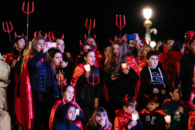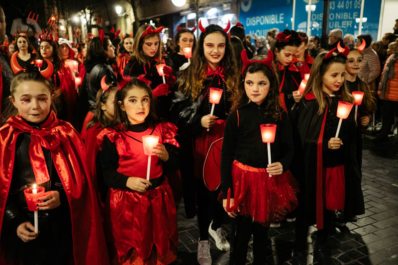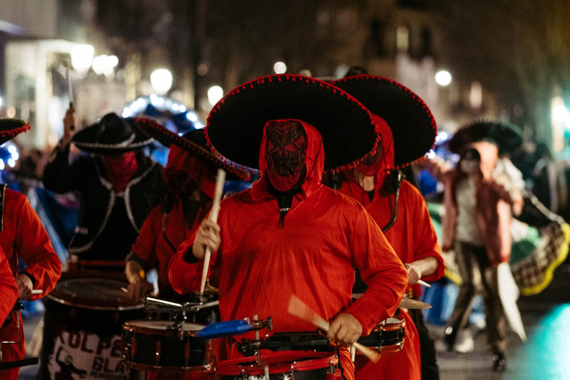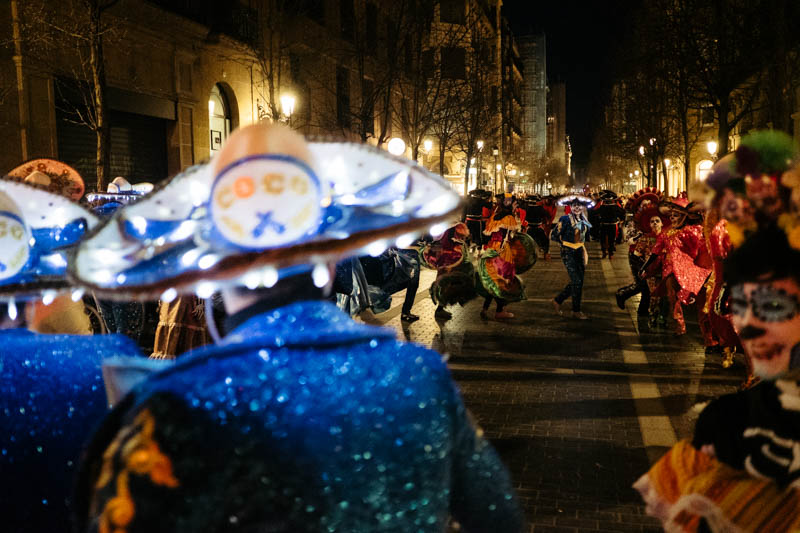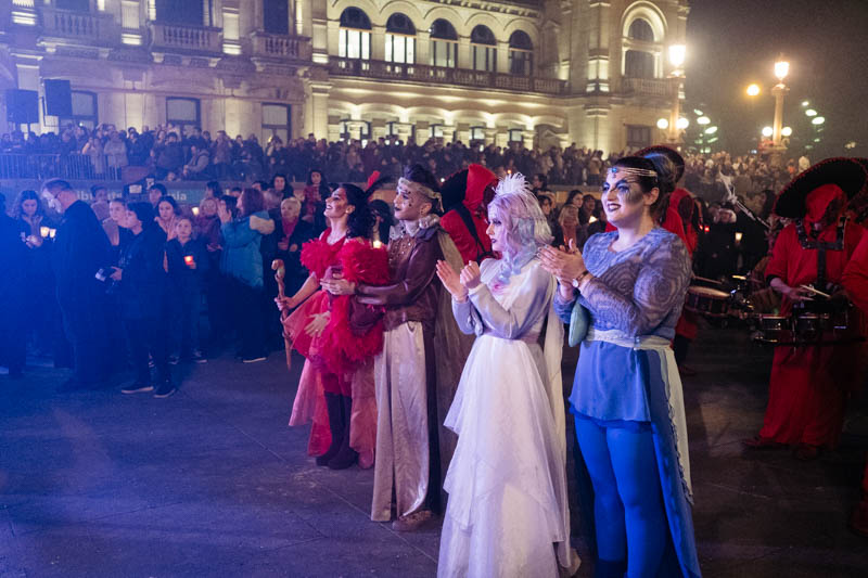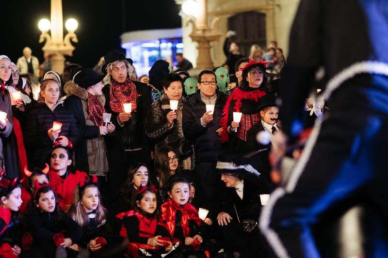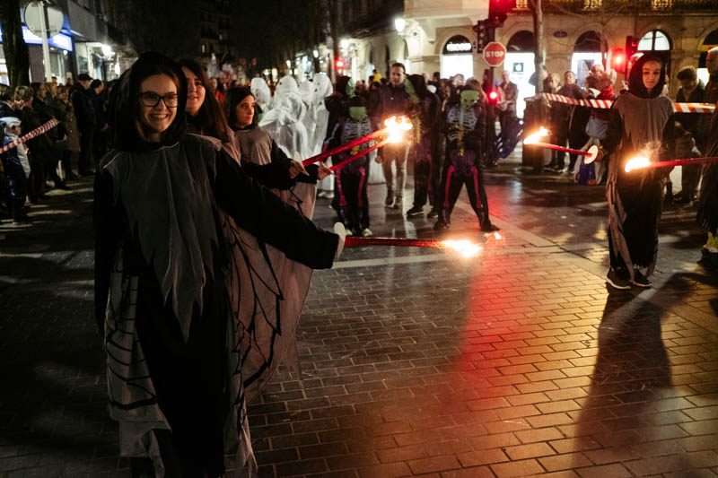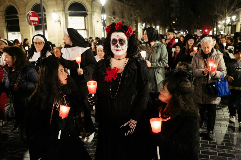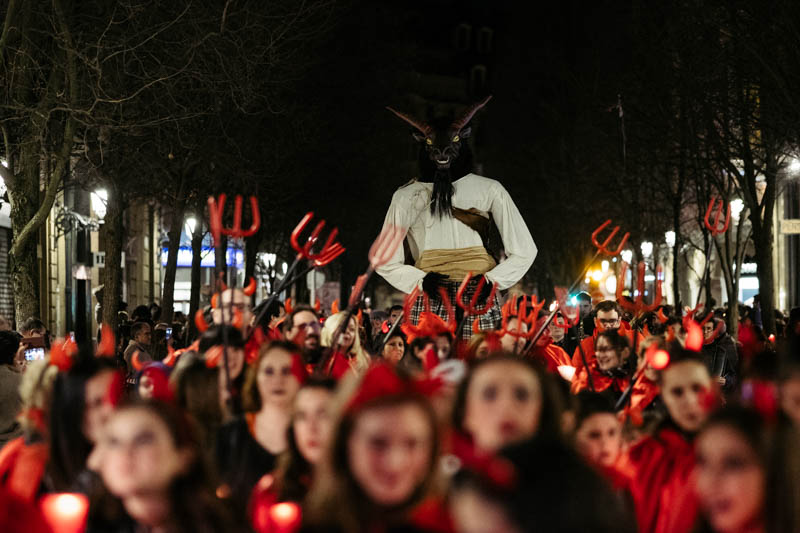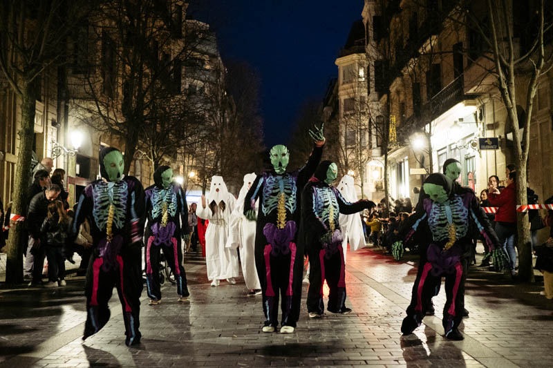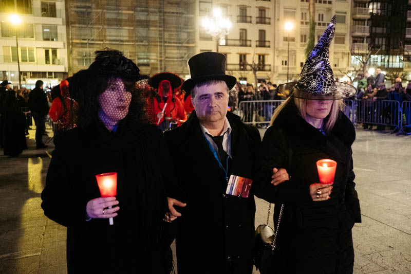En el cortejo fúnebre se vieron diablos, mexicanos, viudas y viudos, el amenazante Aker, esqueletos y tantos personajes más de ultratumba. Todos para despedir la fiesta más carnal marcharon desde la plaza de Bilbao al Ayuntamiento al ritmo de la charanga.