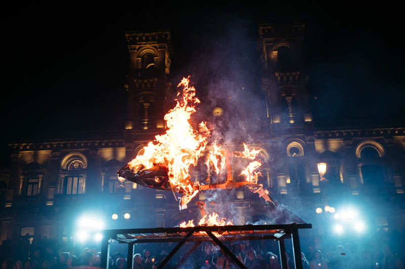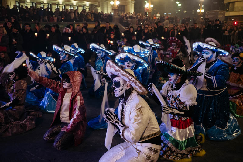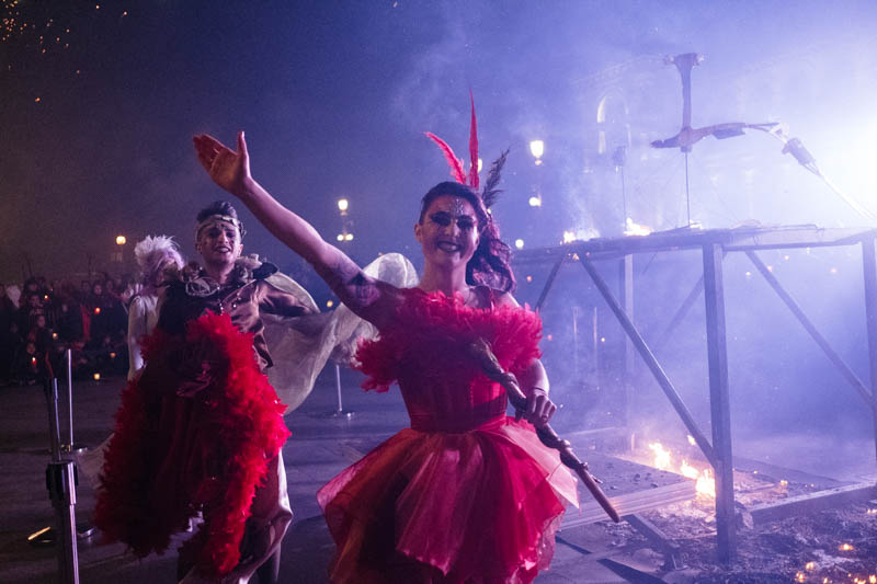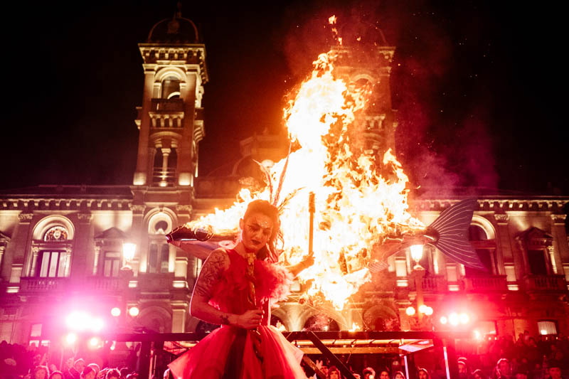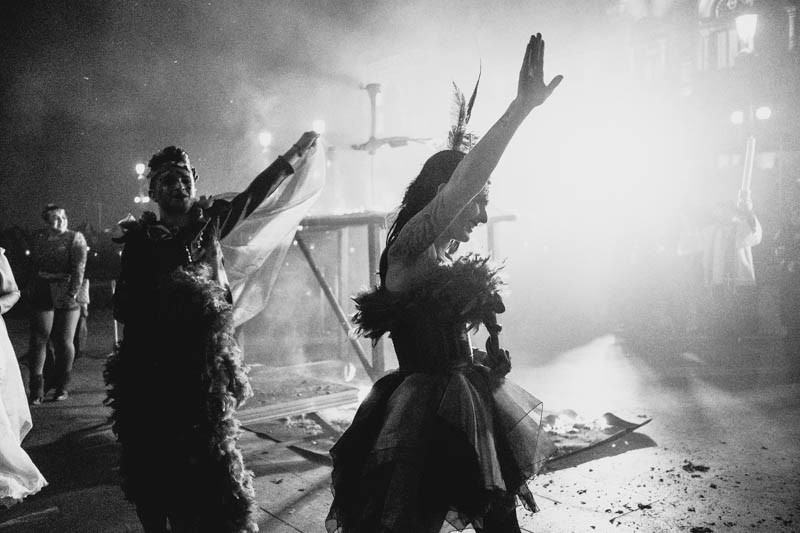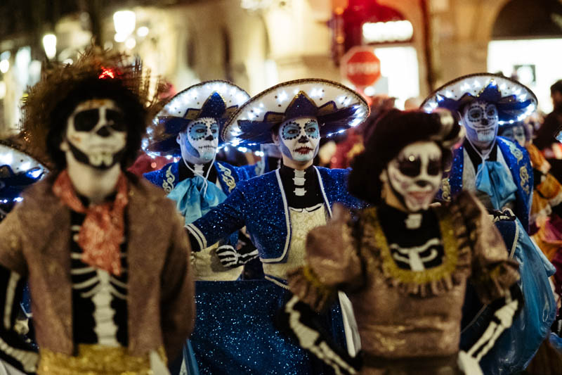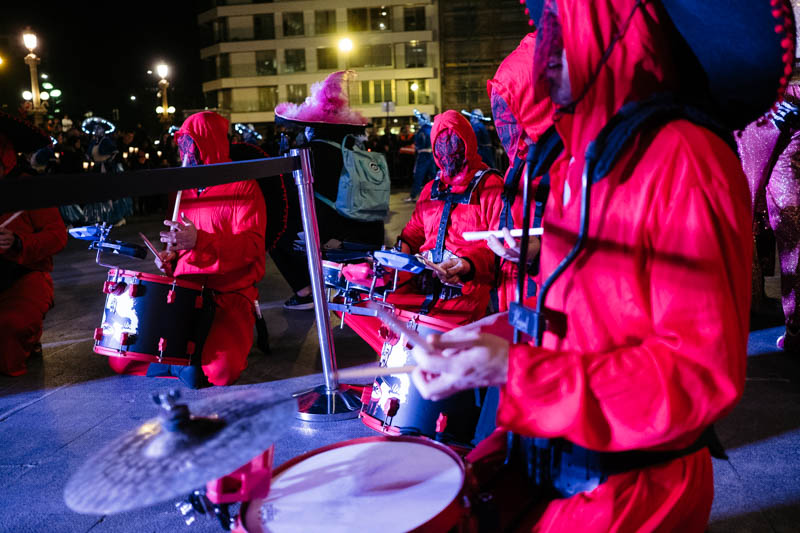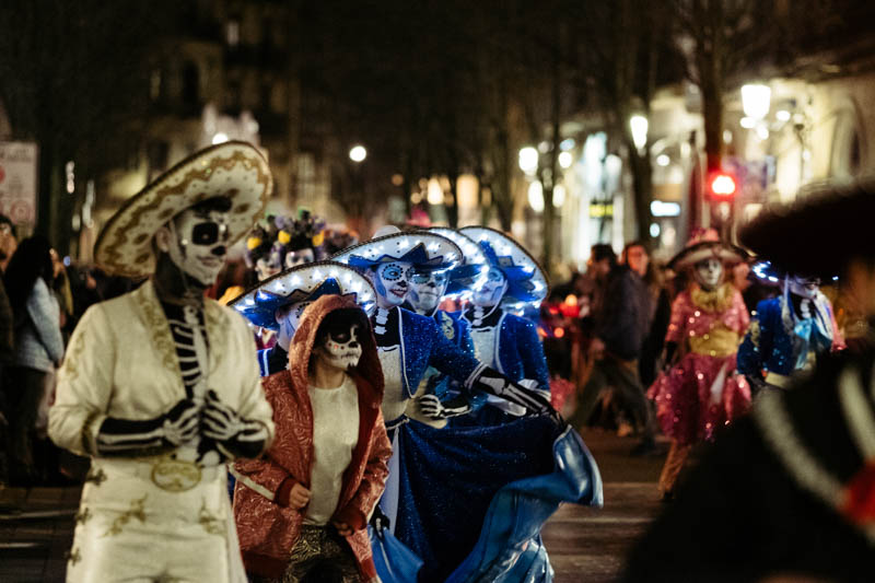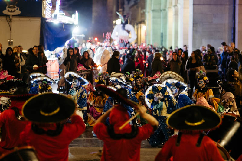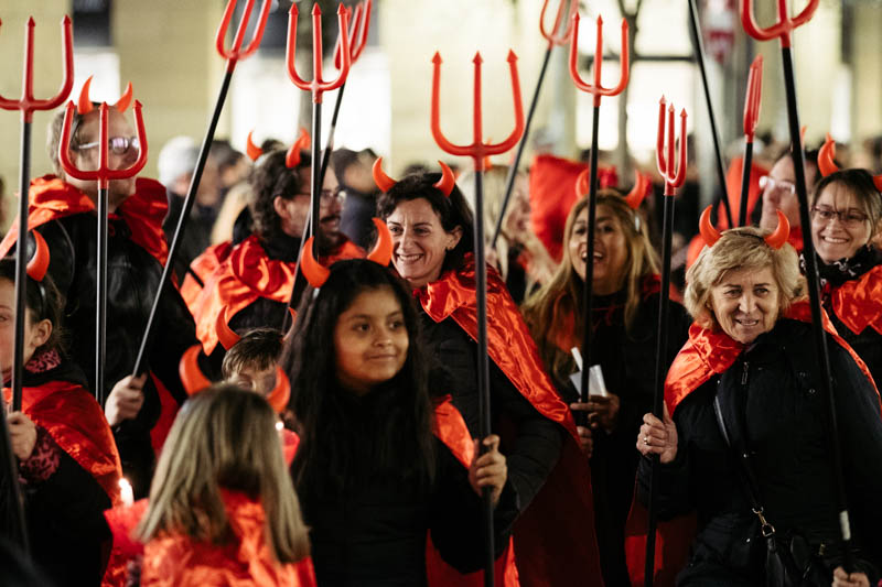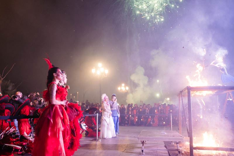 En el cortejo fúnebre se vieron diablos, mexicanos, viudas y viudos, el amenazante Aker, esqueletos y tantos personajes más de ultratumba. Todos para despedir la fiesta más carnal marcharon desde la plaza de Bilbao al Ayuntamiento al ritmo de la charanga.