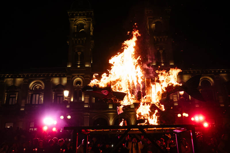 Con un entierro de la sardina populoso y muy fúnebre, como corresponde, perdonado además por la lluvia que amenazó durante toda la tarde, despidió Donostia este lunes sus Carnavales más participativos que nunca gracias al buen tiempo que acompañó el fin de semana.